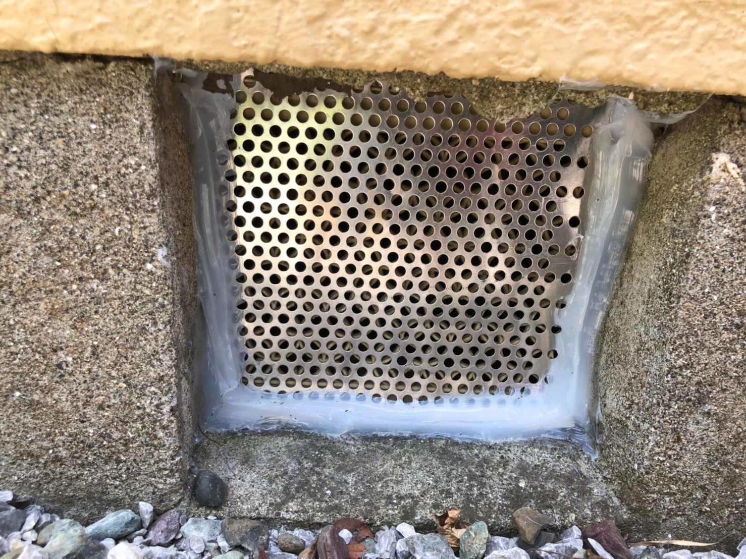 続いて、パンチングメタルや金網、コーキング剤などを用いて、あらゆる侵入経路を封鎖していきます。これによりネズミに限らず、他の害獣の再侵入も防ぐことができます。