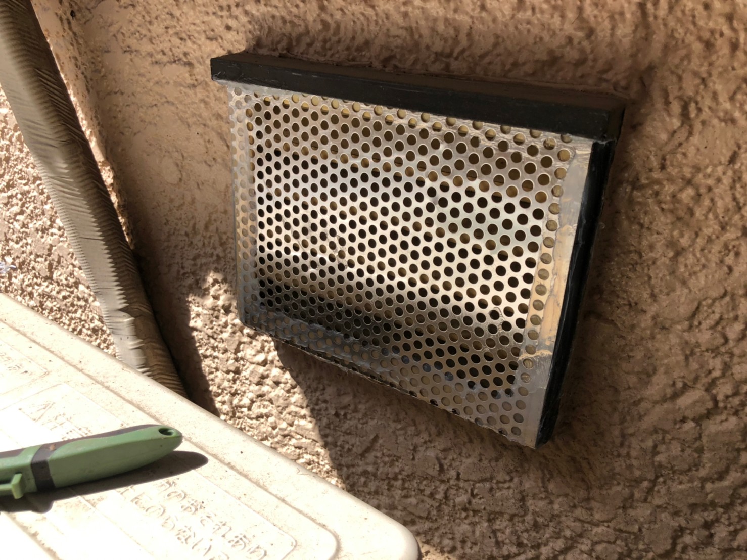 外壁の隙間や床下通風口、換気口、エアコン配管の隙間といった場所から、ネズミが建物内へ侵入しており、騒音被害や糞尿による悪臭、衛生面での不安などの理由からお問い合わせをいただきました。