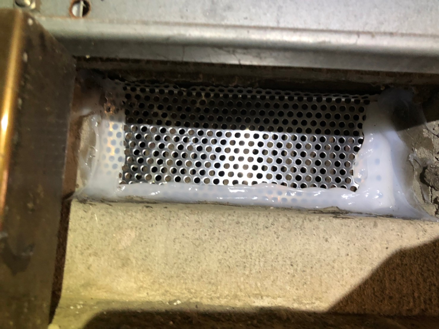 続いて、パンチングメタルや金網、コーキング剤などを用いて、あらゆる侵入経路を封鎖していきます。これによりネズミに限らず、他の害獣の再侵入も防ぐことができます。
