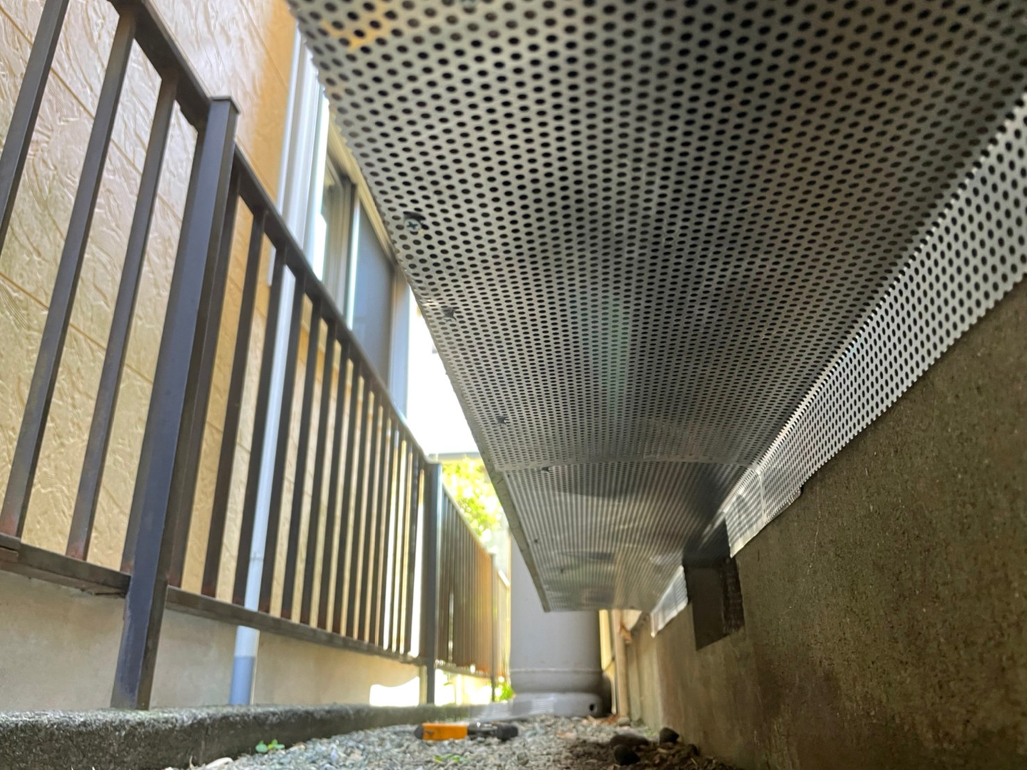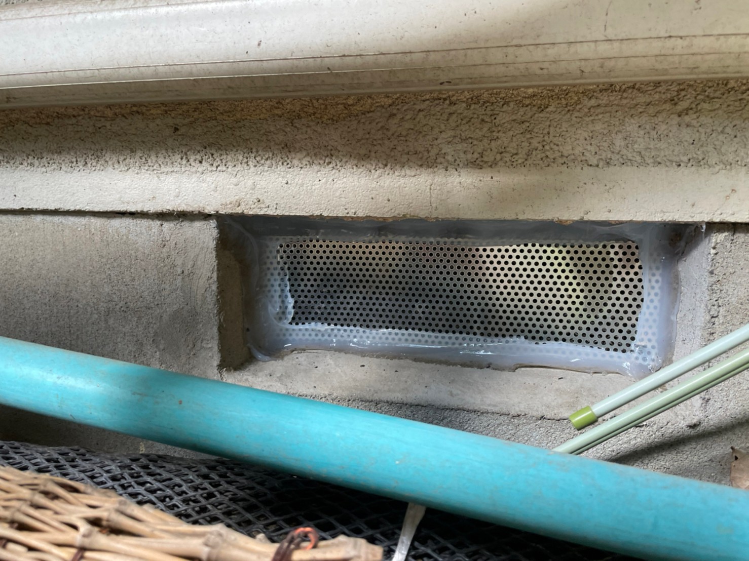 続いて、パンチングメタルや金網、コーキング剤などを用いて、あらゆる侵入経路を封鎖していきます。これによりネズミに限らず、他の害獣の再侵入も防ぐことができます。