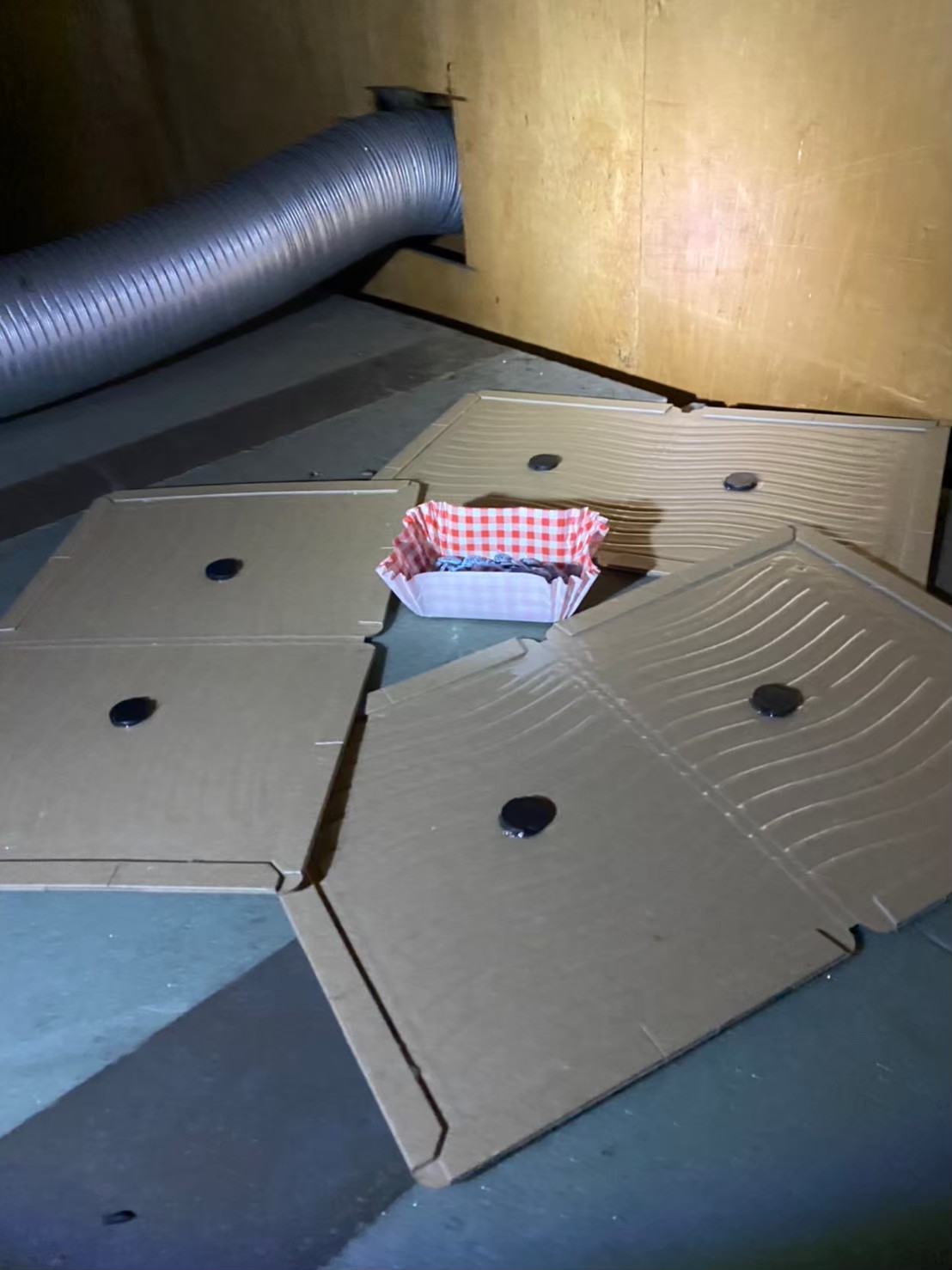 燻煙材などを使用してネズミを追い出し、糞などの清掃や消毒、消臭します。そして忌避剤を設置して建物内への空気の循環は損なわれないように、パンチングメタルや金網、コーキング剤などを使い侵入口を全て塞ぎました。