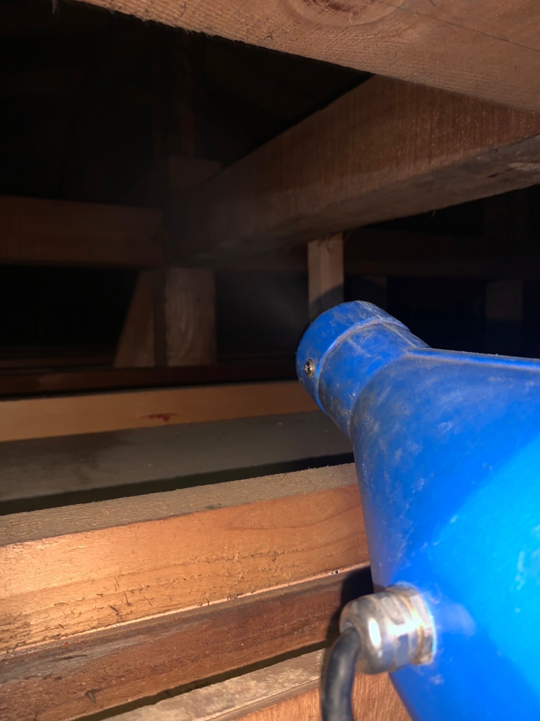 まずは、燻煙剤と呼ばれる薬剤を天井裏や床下に投入することで、ネズミを追い出していきます。