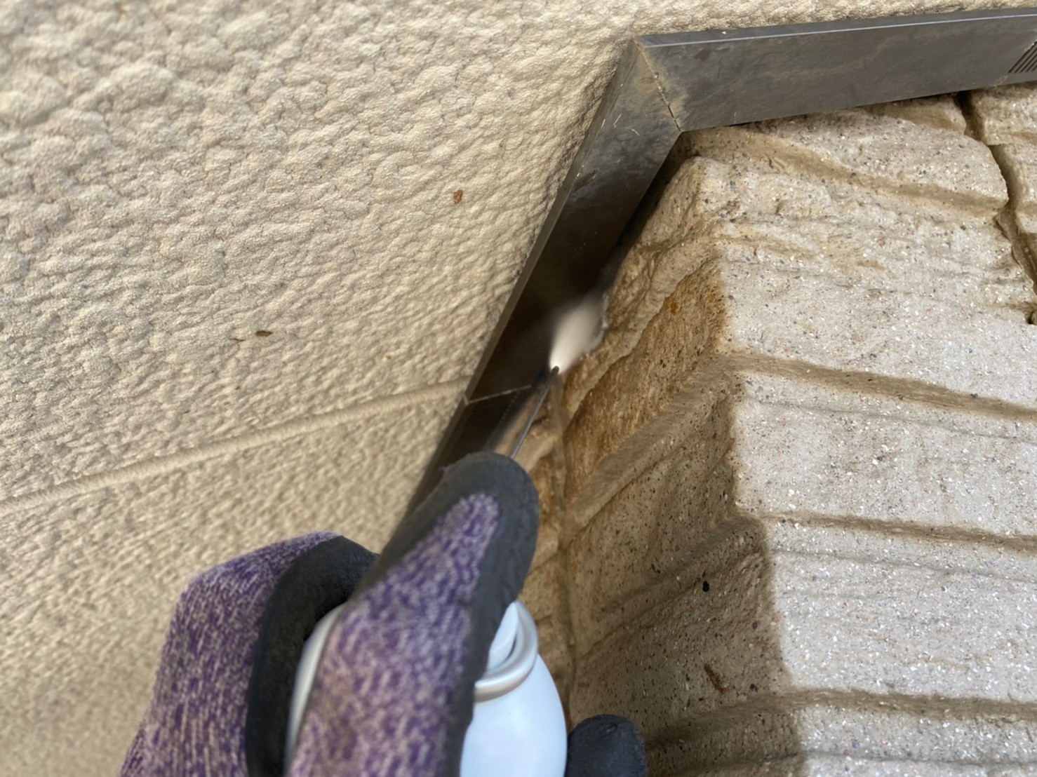 続いて、コウモリの再侵入を防ぐために、パンチングメタルや金網、コーキング剤などを用いて侵入経路の封鎖を行います。