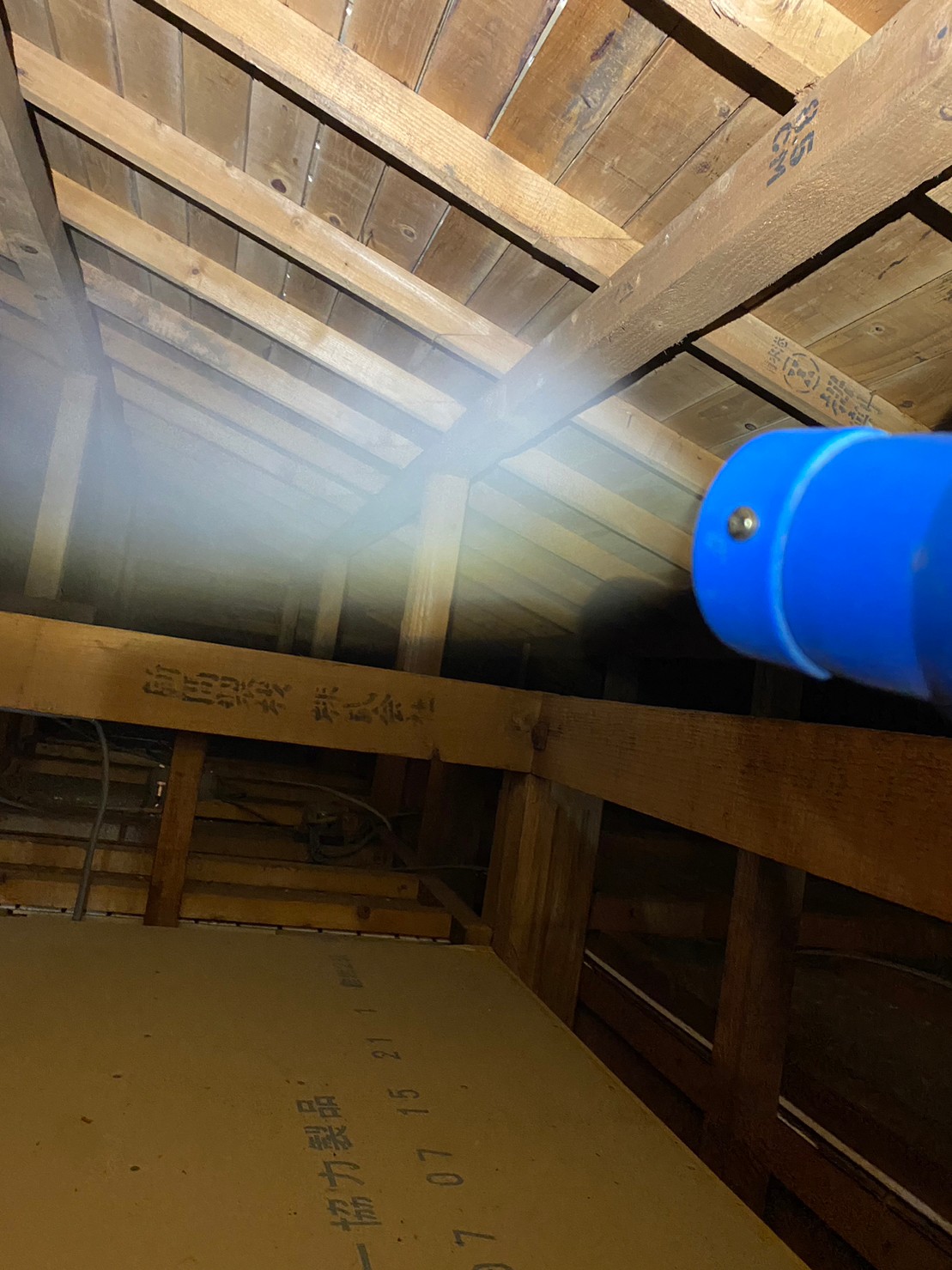 まずは、燻煙剤と呼ばれる薬剤を天井裏や床下に投入することで、アライグマを追い出していきます。