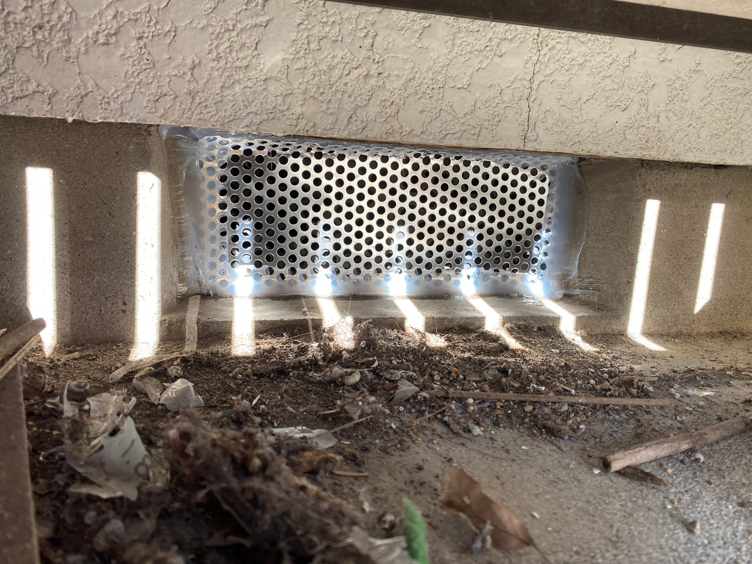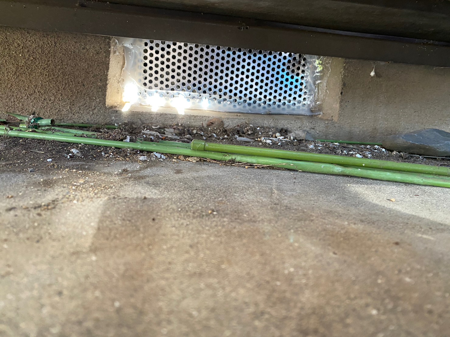 基礎の割れ目や床下通風口等がアライグマの侵入経路と疑われました。