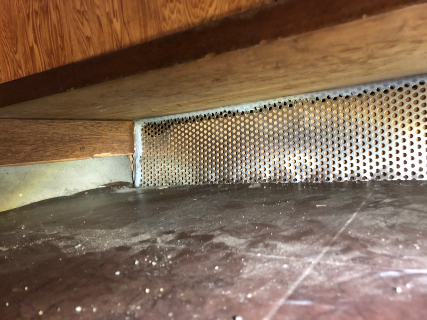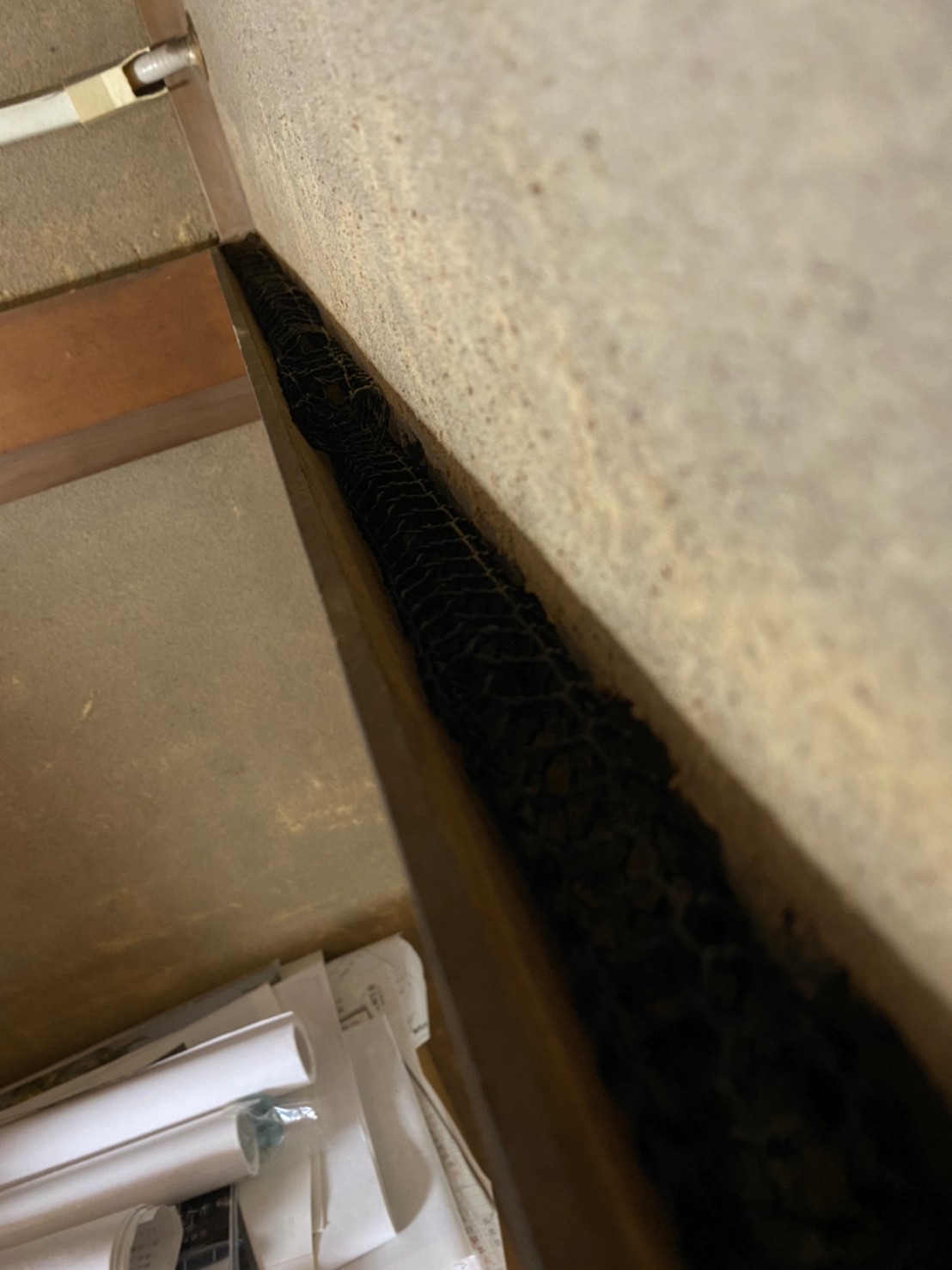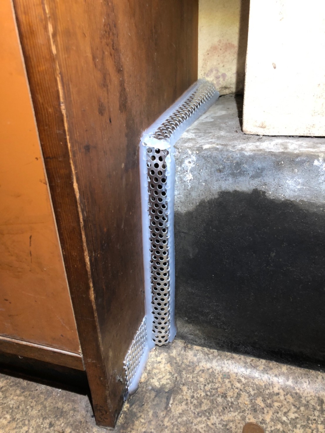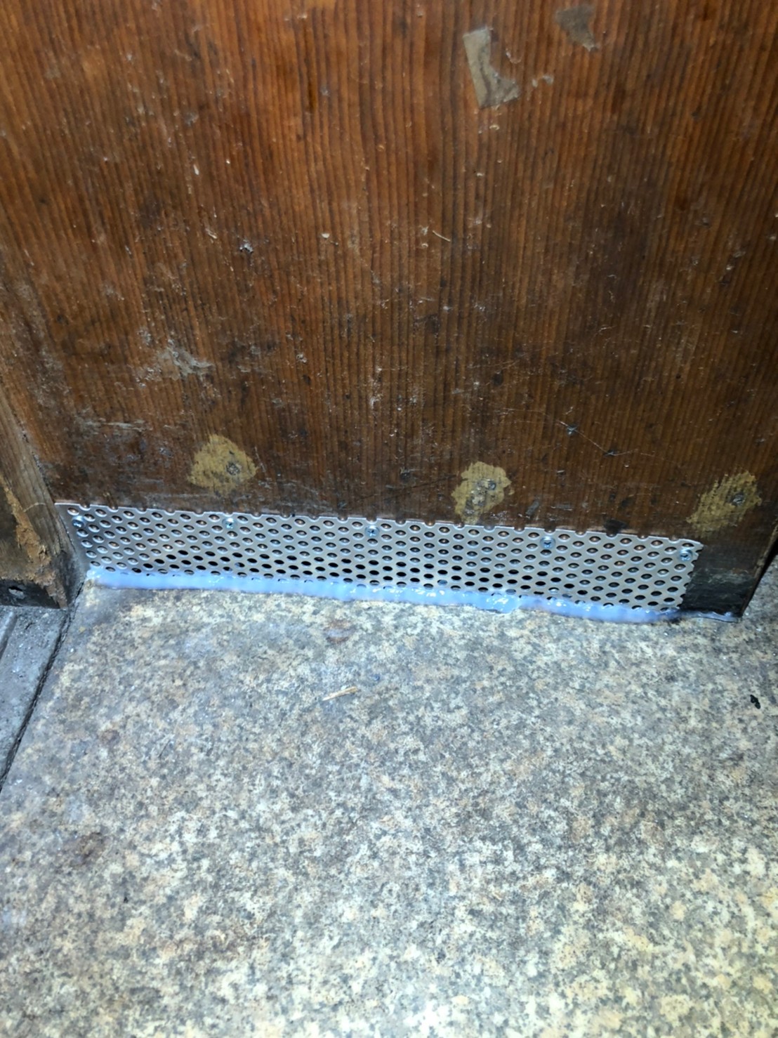 燻煙材などを使用してネズミを追い出し、糞などの清掃や消毒、消臭します。そして忌避剤を設置して建物内への空気の循環は損なわれないように、パンチングメタルや金網、コーキング剤などを使い侵入口を全て塞ぎました。
