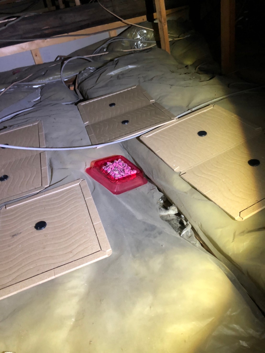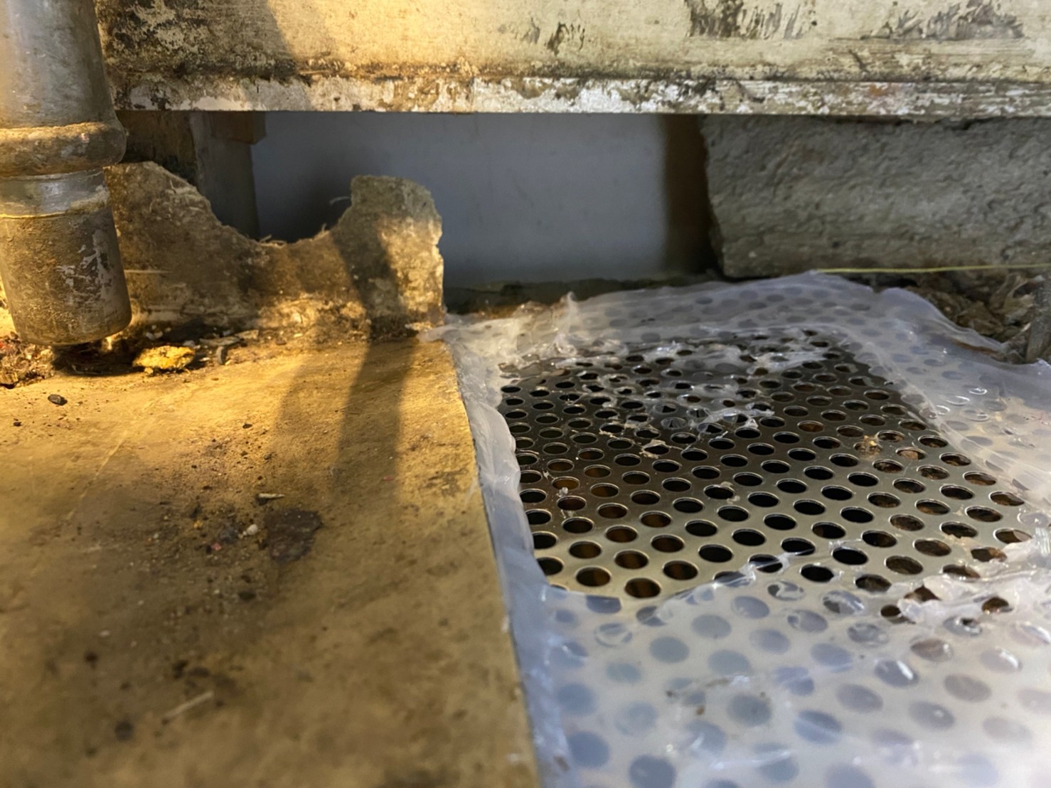 屋根の隙間や床下通風口、エアコン配管の隙間、排水部等がネズミの侵入経路と疑われました。
