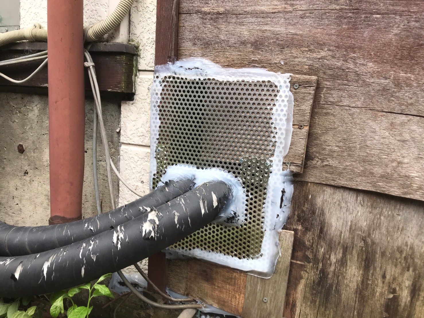 続いて、パンチングメタルや金網、コーキング剤などを用いて、あらゆる侵入経路を封鎖していきます。これによりネズミに限らず、他の害獣の再侵入も防ぐことができます。