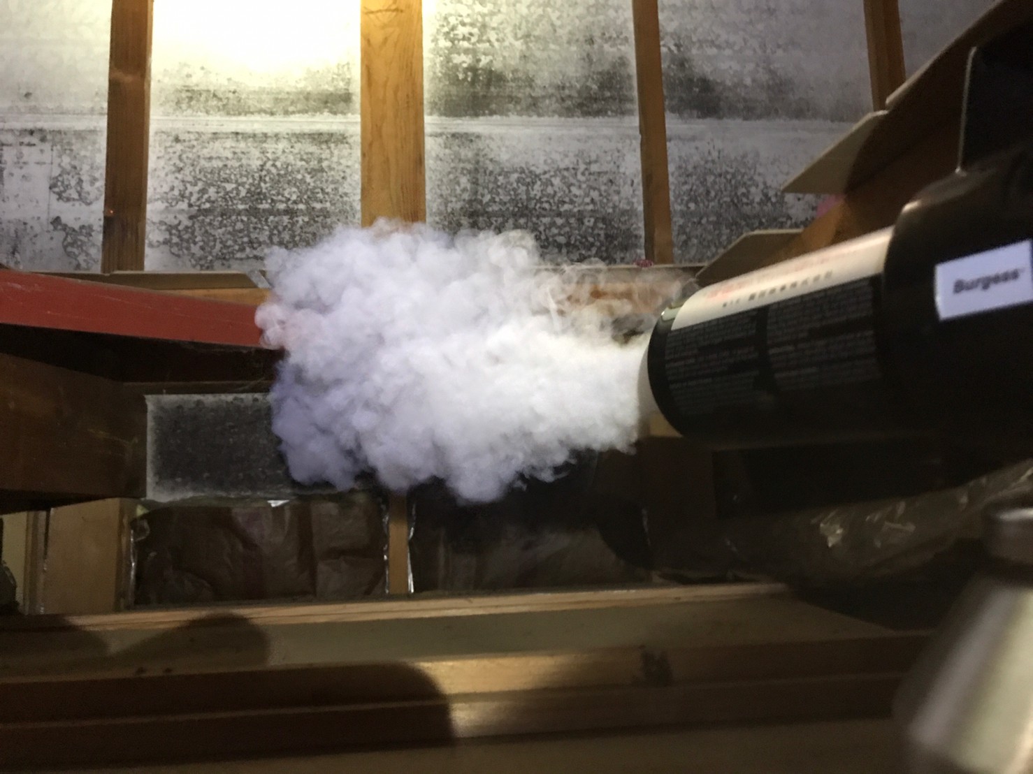 まずは、燻煙剤と呼ばれる薬剤を天井裏や床下に投入することで、ネズミを追い出していきます。