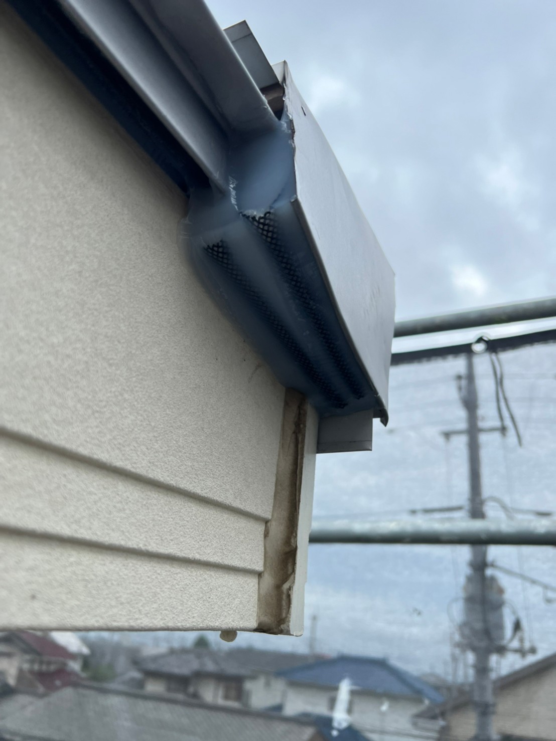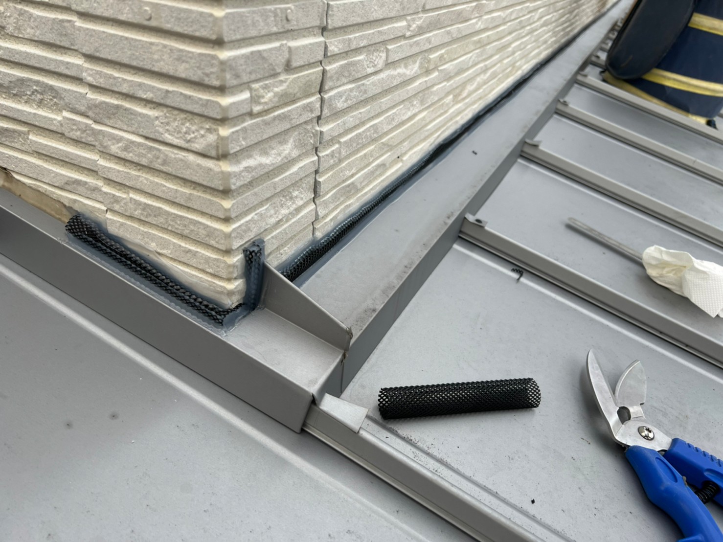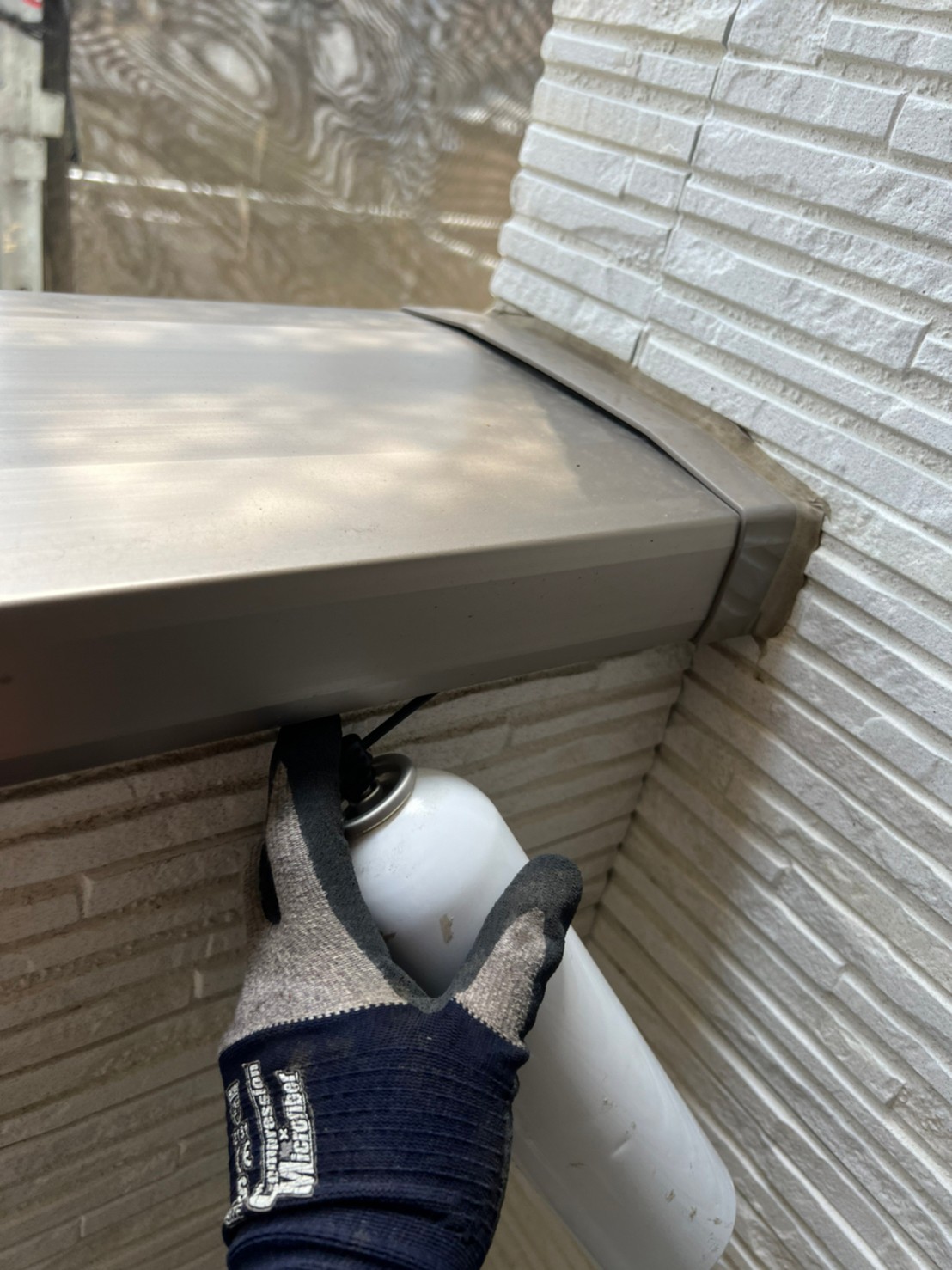 続いて、パンチングメタルや金網、コーキング剤などを用いて、あらゆる侵入経路を封鎖していきます。これによりコウモリに限らず、他の害獣の再侵入も防ぐことができます。