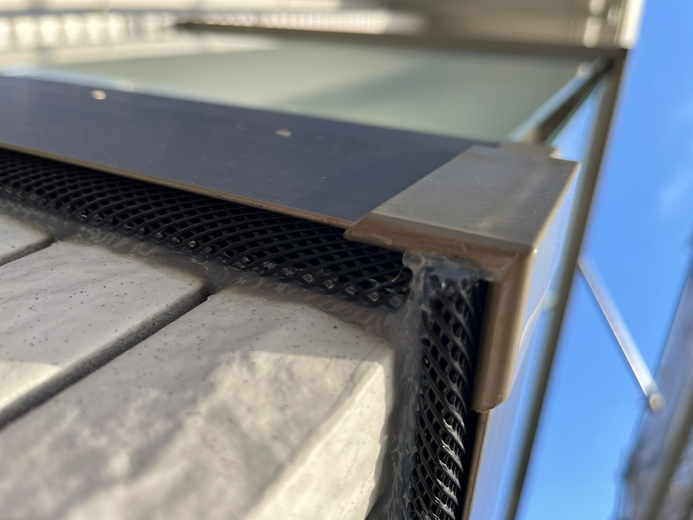 続いて、コウモリの再侵入を防ぐために、パンチングメタルや金網、コーキング剤などを用いて侵入経路の封鎖を行います。
