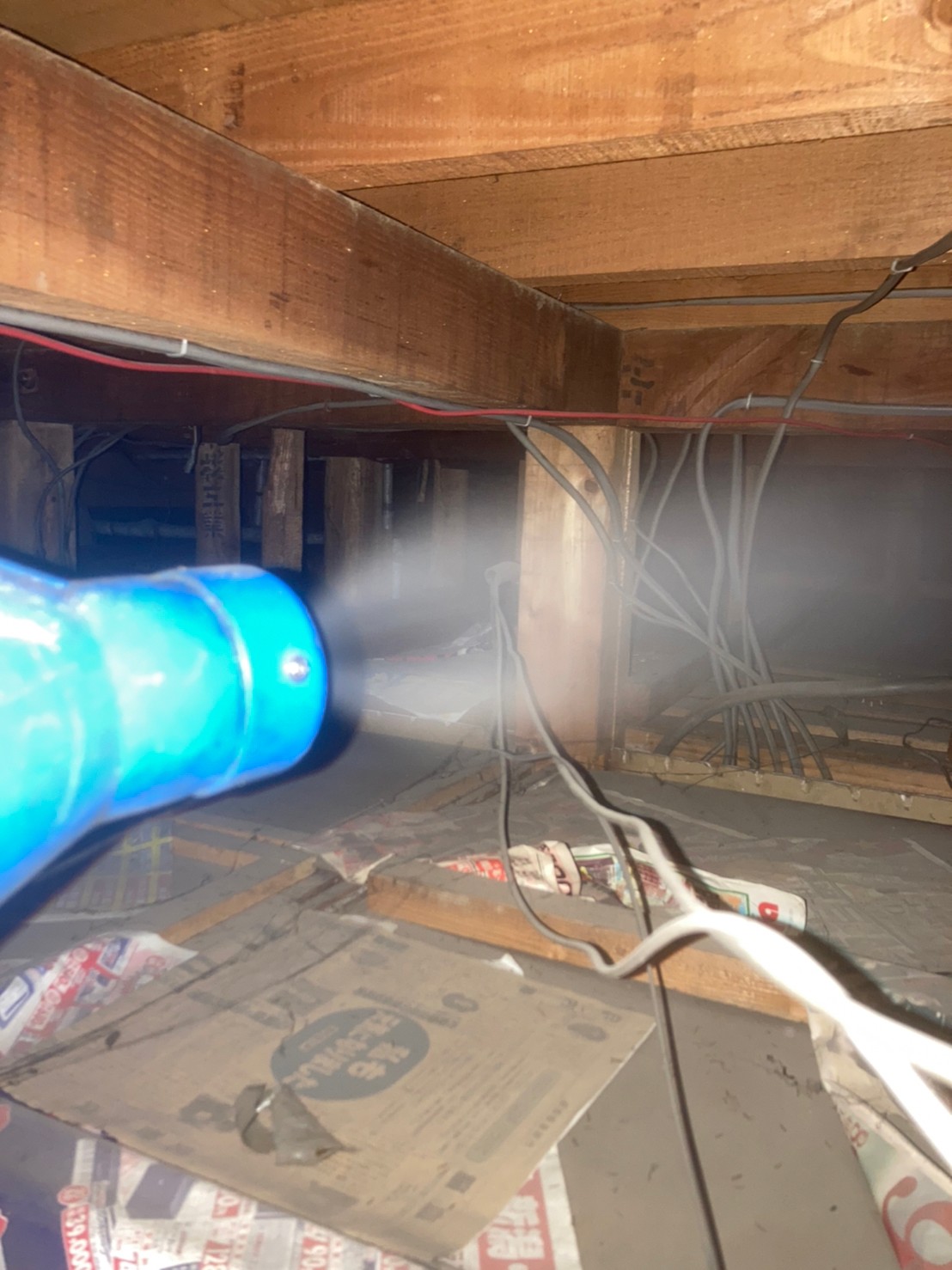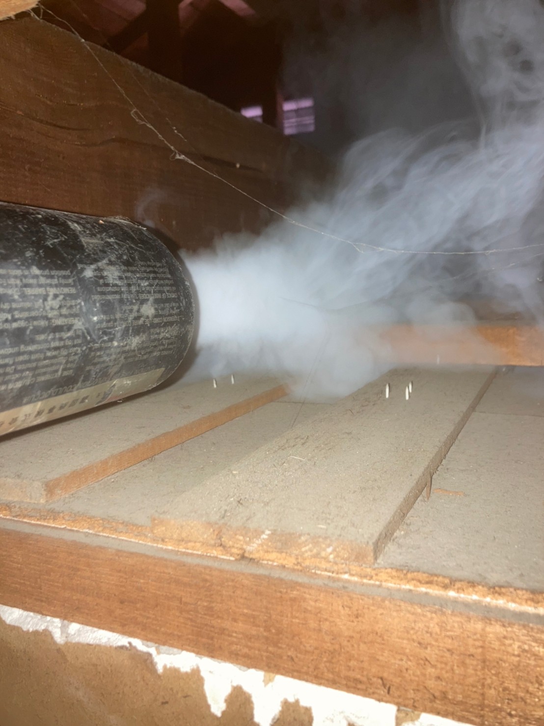 まずは、燻煙剤を使って屋内に潜んでいるアライグマを追い出します。
