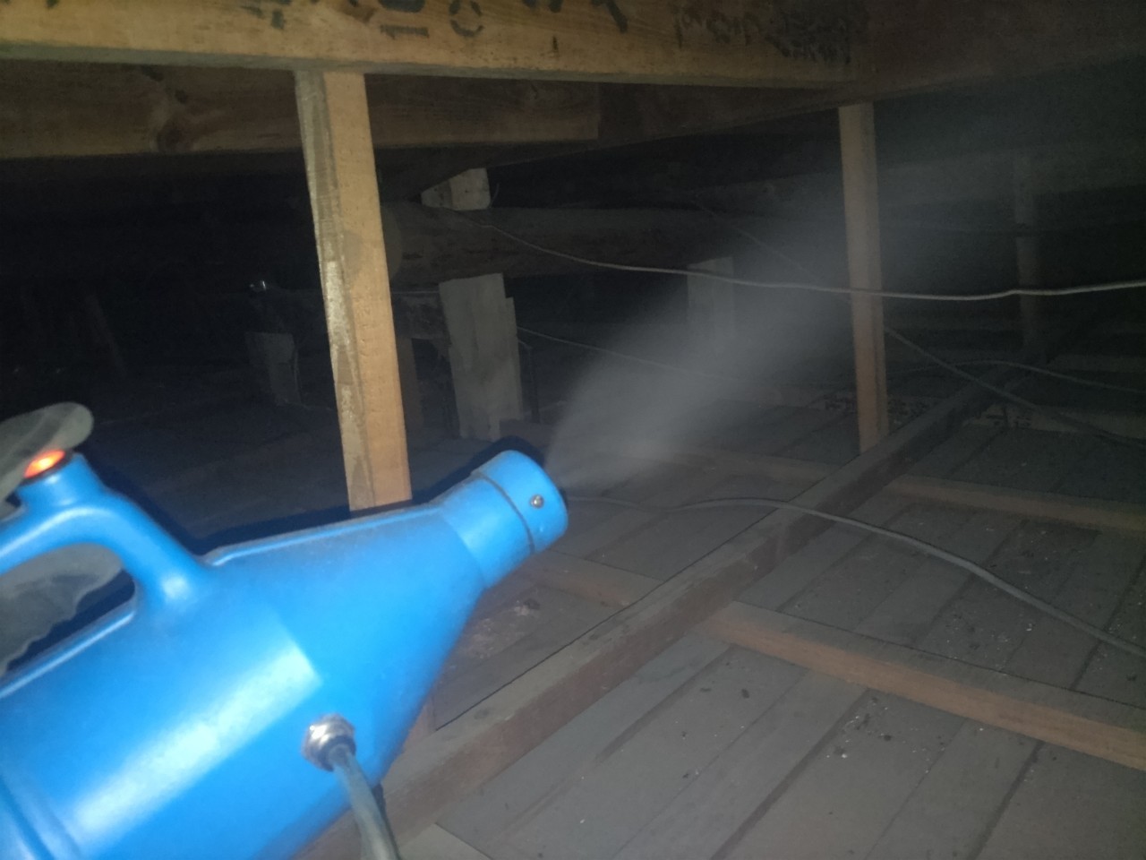 まずは、燻煙剤を使って屋内に潜んでいるアライグマを追い出します。