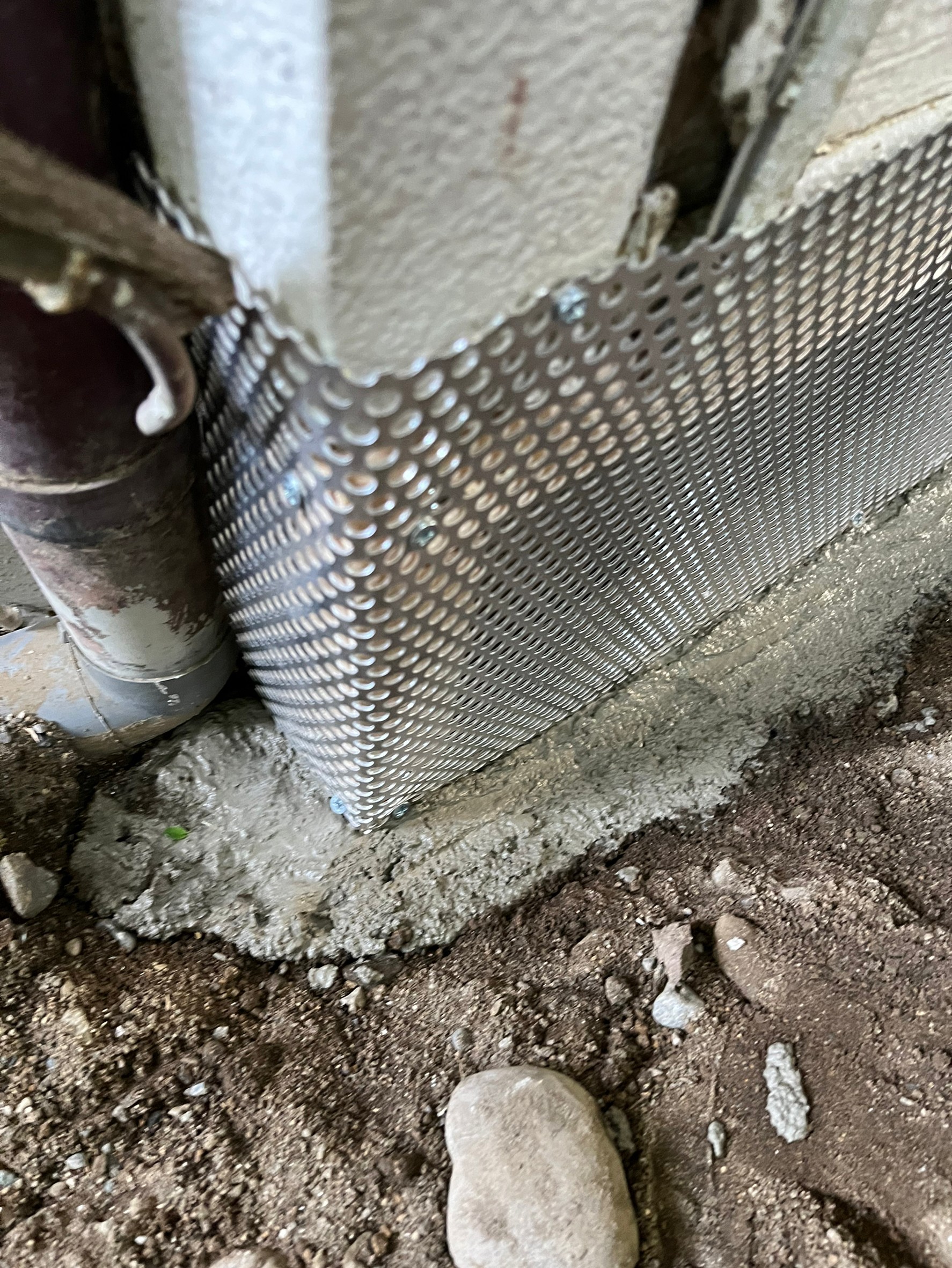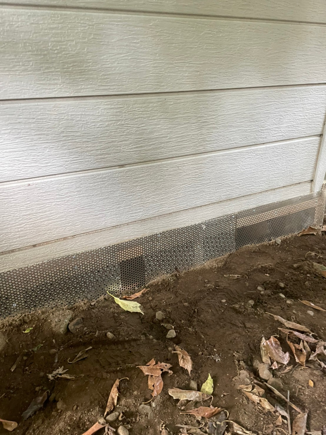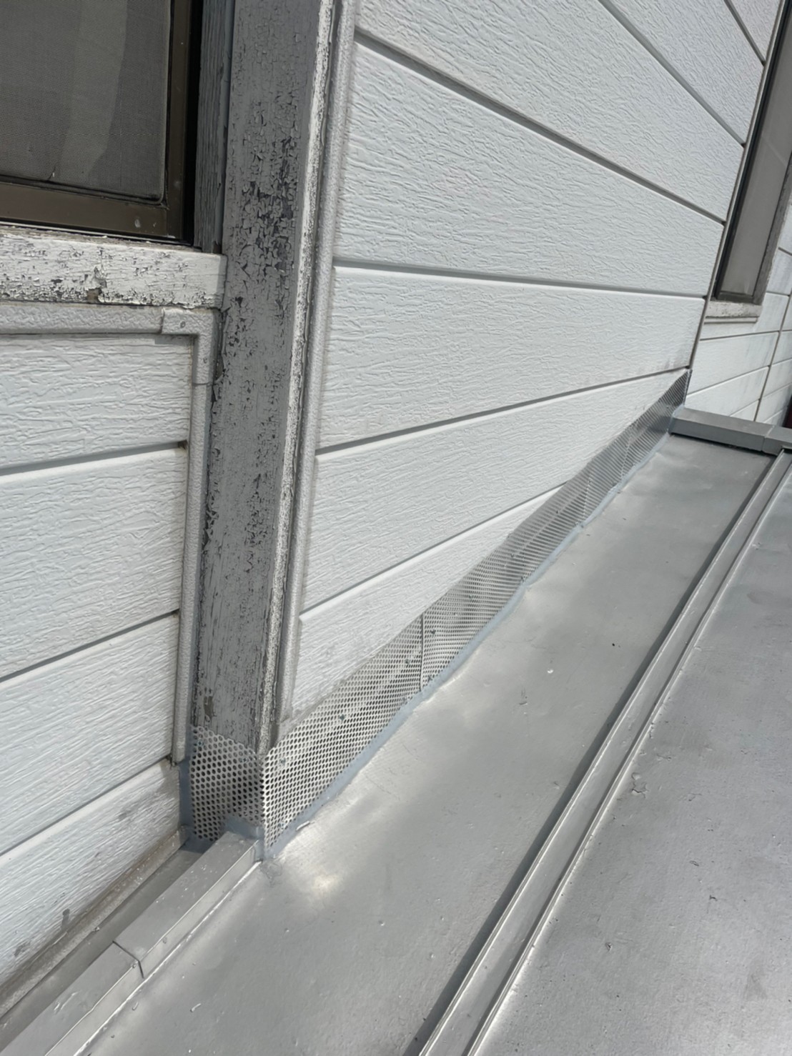 続いて、パンチングメタルや金網、コーキング剤などを用いて、あらゆる侵入経路を封鎖していきます。これによりアライグマに限らず、他の害獣の再侵入も防ぐことができます。