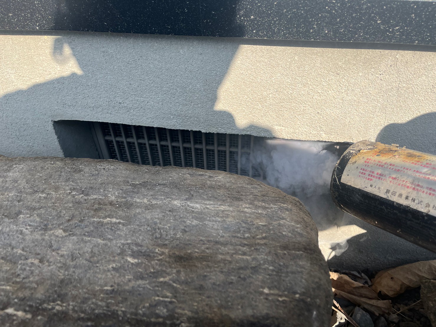 まずは、燻煙剤と呼ばれる薬剤を天井裏や床下に投入することで、ネズミを追い出していきます。