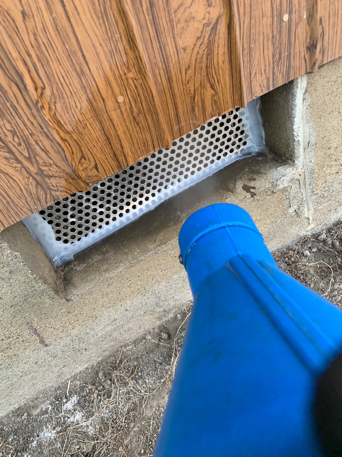 続いて、パンチングメタルや金網、コーキング剤などを用いて、あらゆる侵入経路を封鎖していきます。これによりネズミに限らず、他の害獣の再侵入も防ぐことができます。