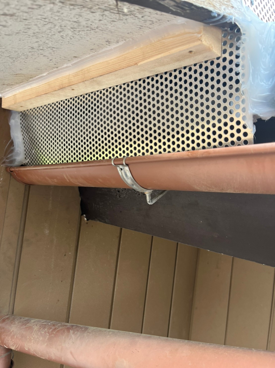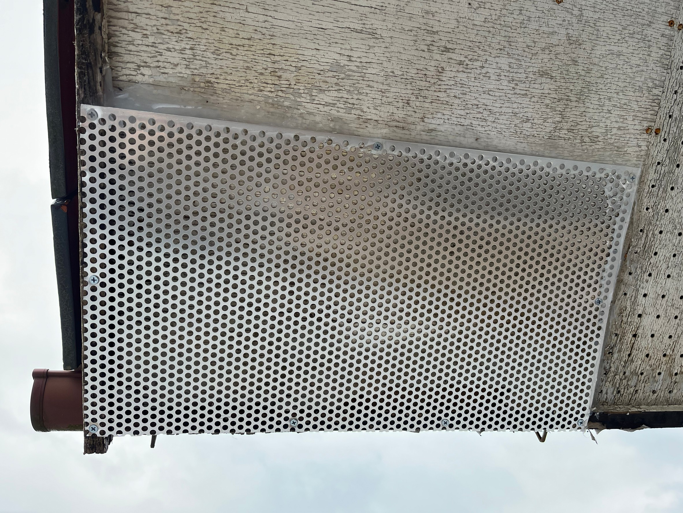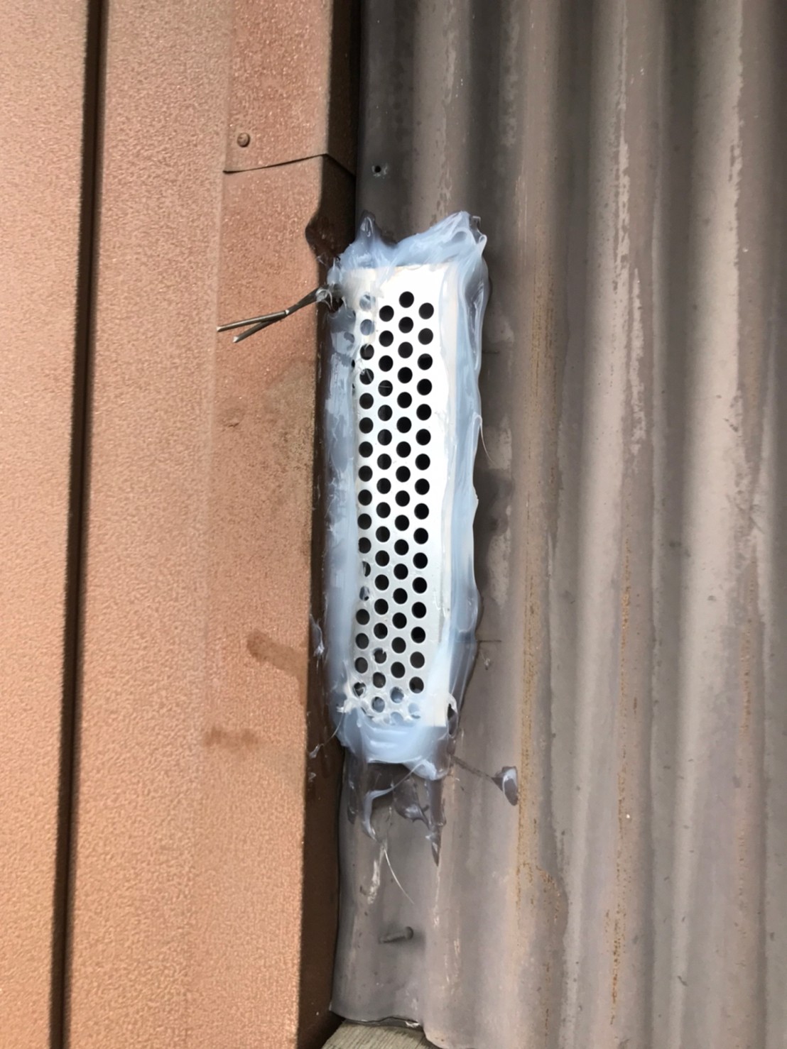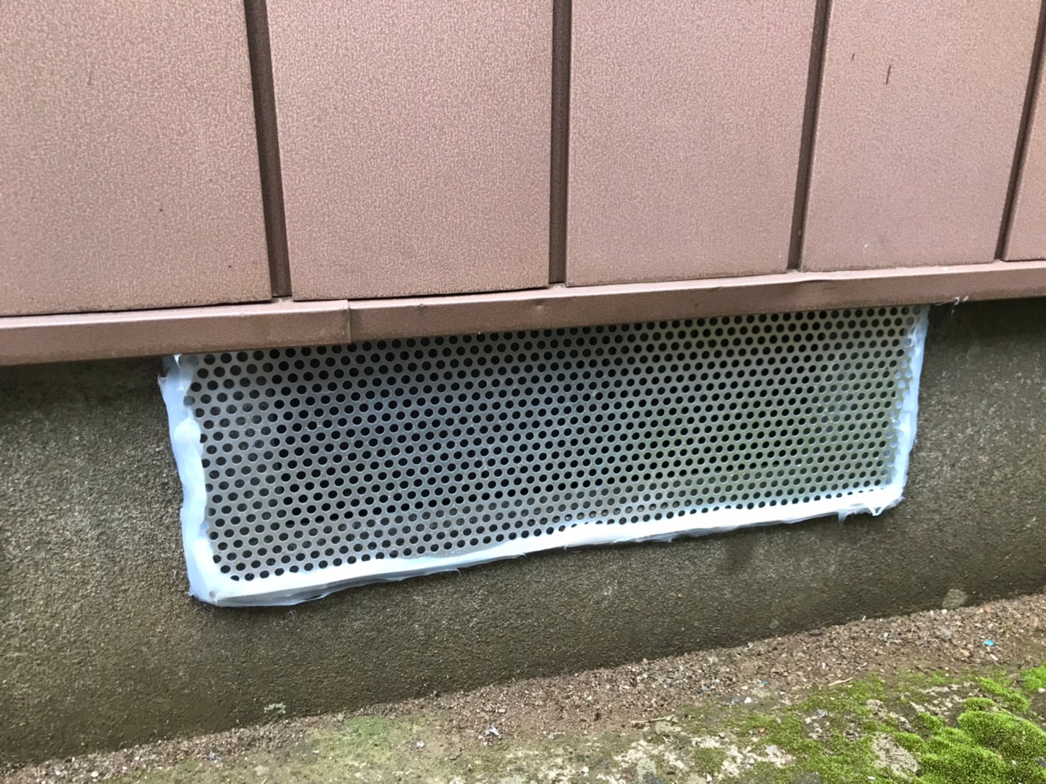 続いて、パンチングメタルや金網、コーキング剤などを用いて、あらゆる侵入経路を封鎖していきます。これによりアライグマに限らず、他の害獣の再侵入も防ぐことができます。