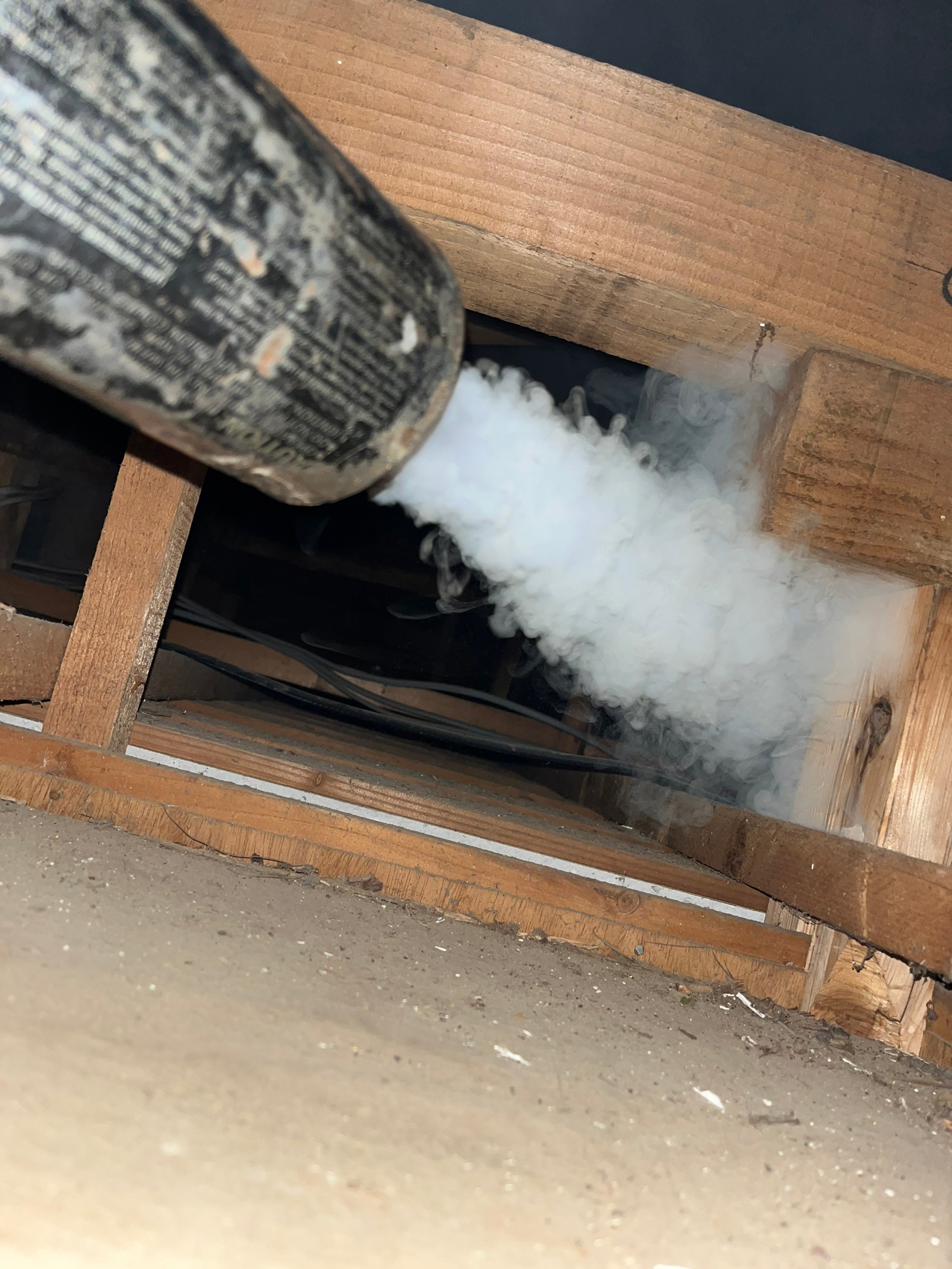 まずは、燻煙剤を使って屋内に潜んでいるアライグマを追い出します。