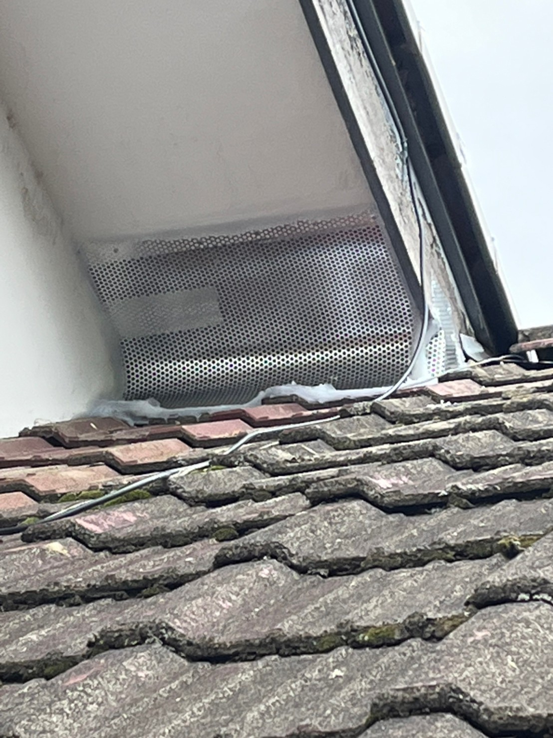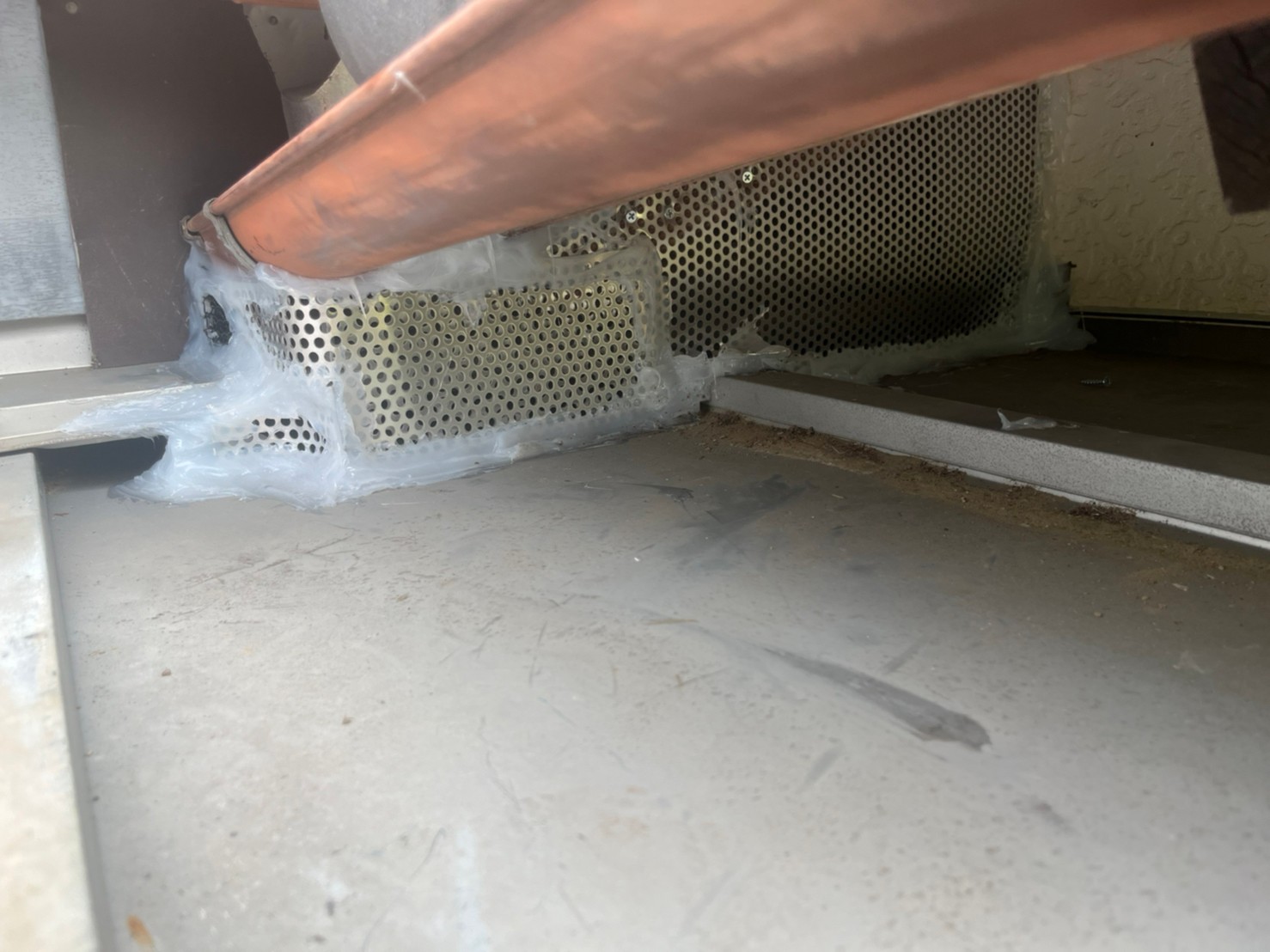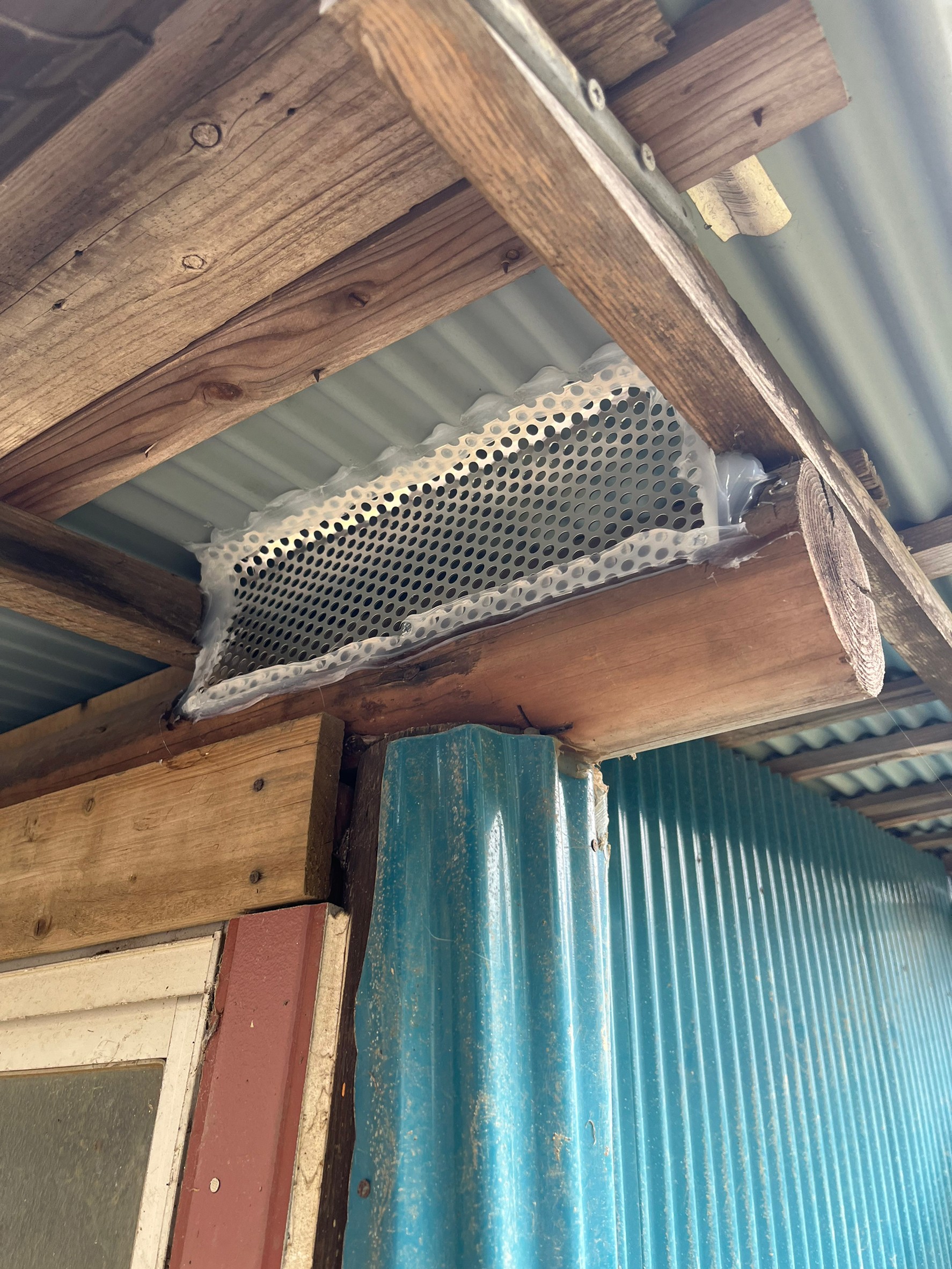 続いて、アライグマの再侵入を防ぐために、パンチングメタルや金網、コーキング剤などを用いて侵入経路の封鎖を行います。