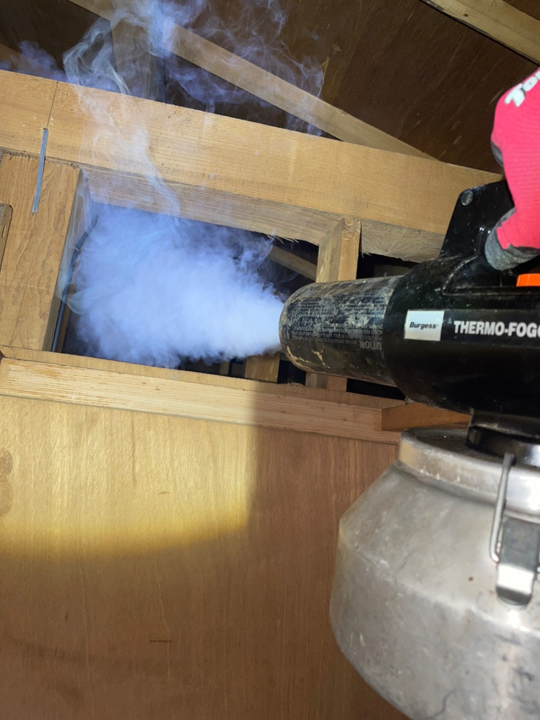 まずは、燻煙剤と呼ばれる薬剤を天井裏や床下に投入することで、ネズミを追い出していきます。