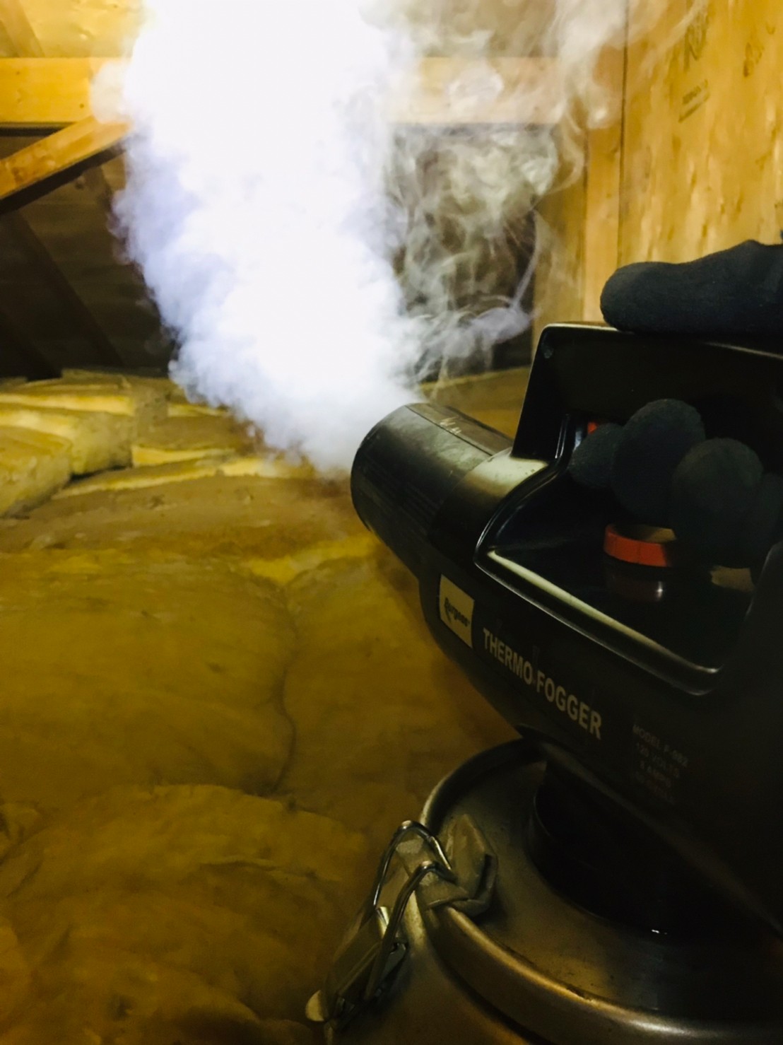 まずは、燻煙剤と呼ばれる薬剤を天井裏や床下に投入することで、ネズミを追い出していきます。