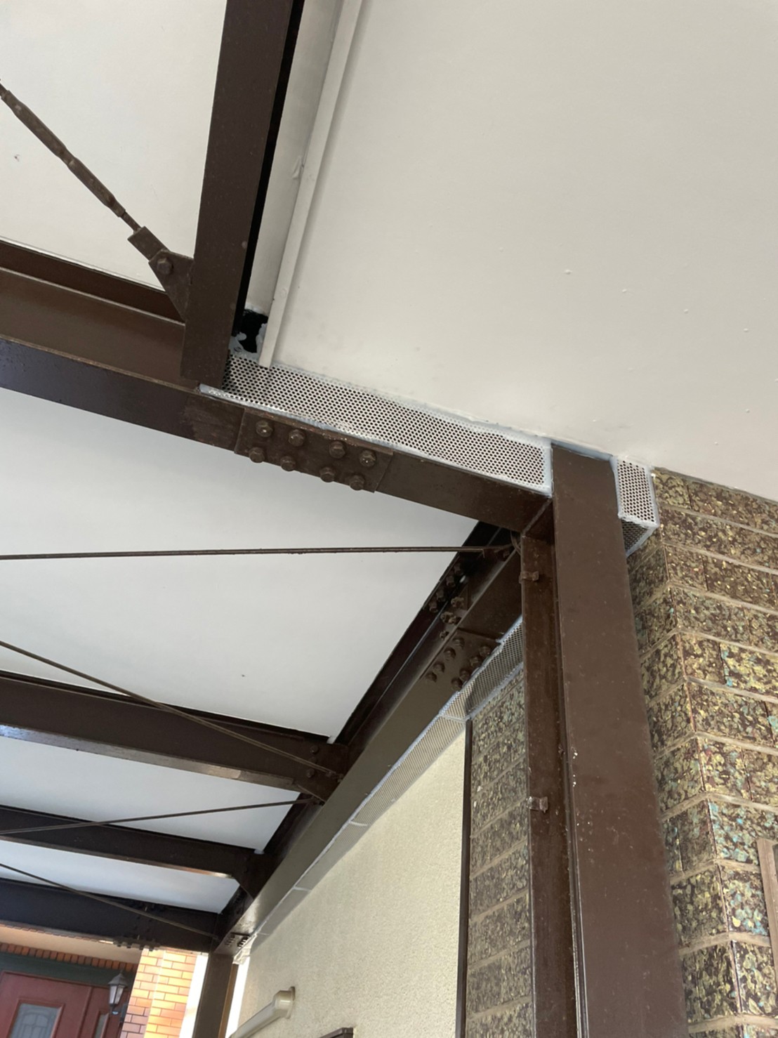 続いて、パンチングメタルや金網、コーキング剤などを用いて、あらゆる侵入経路を封鎖していきます。これによりネズミに限らず、他の害獣の再侵入も防ぐことができます。