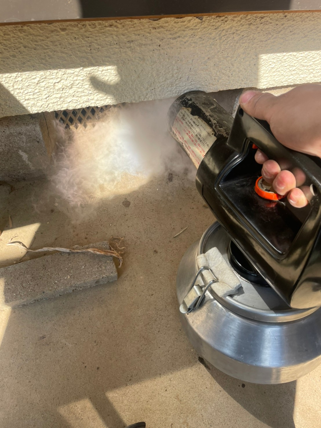 まずは、燻煙剤を使って屋内に潜んでいるネズミを追い出します。