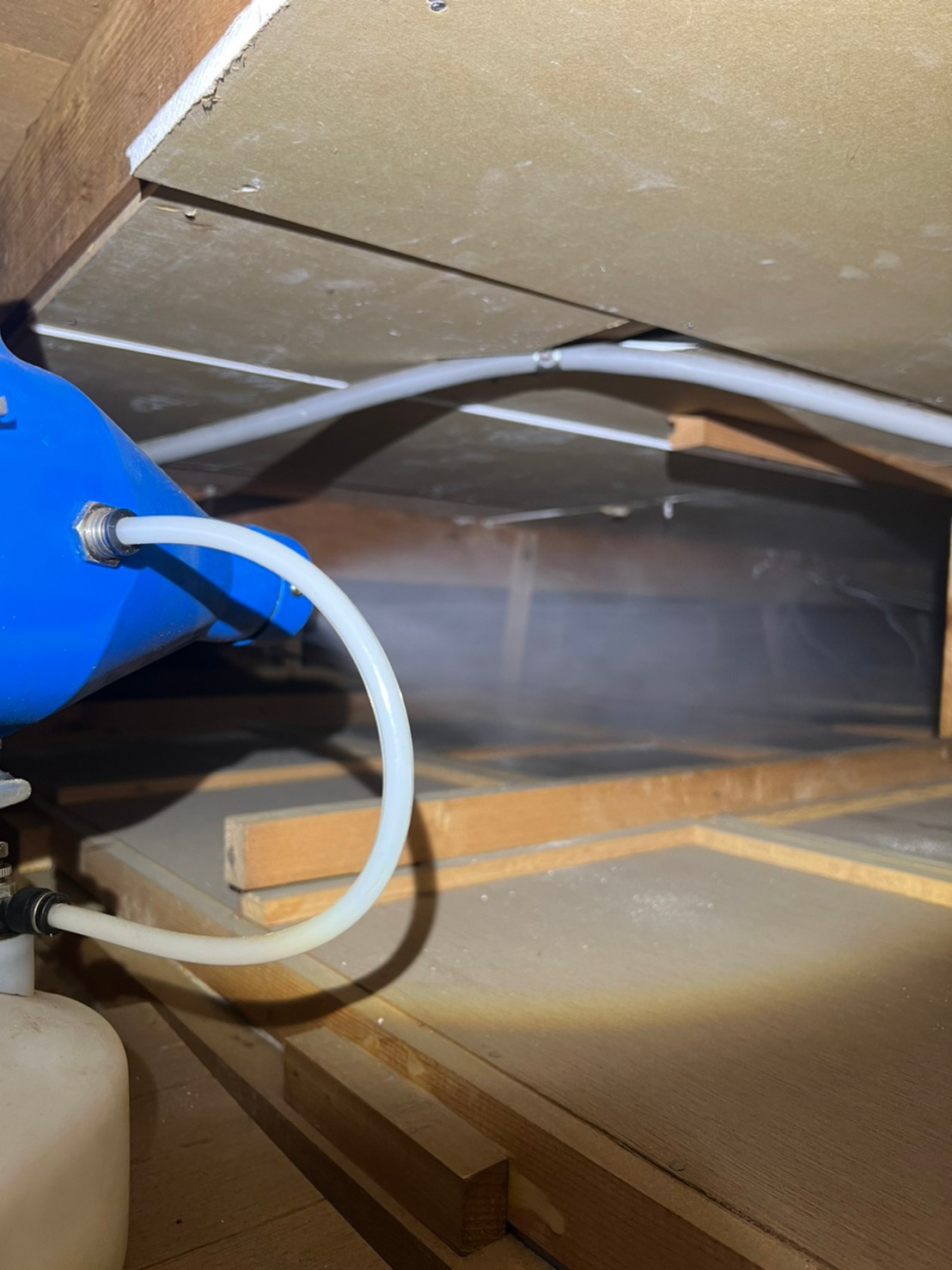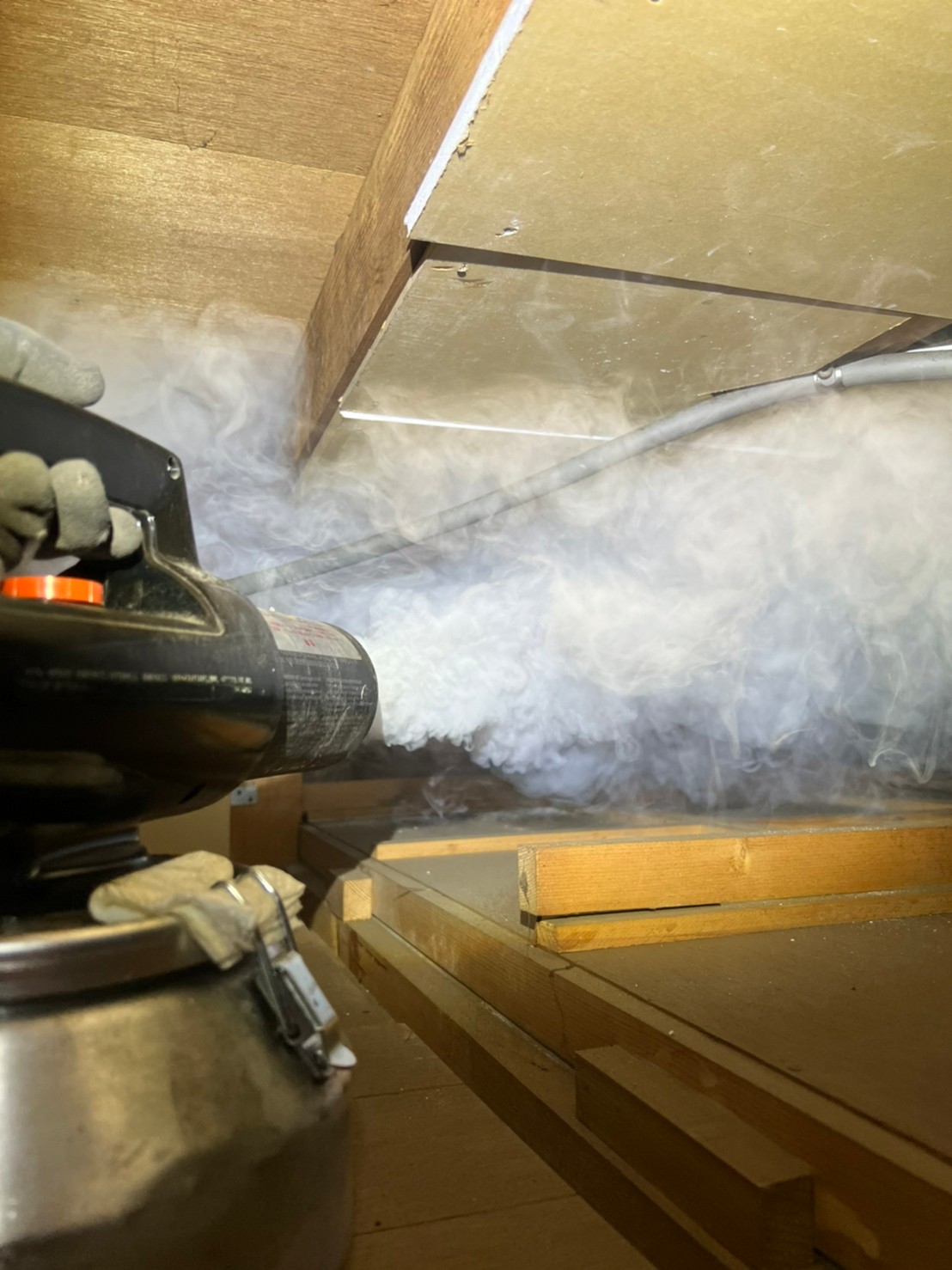 まずは、燻煙剤と呼ばれる薬剤を天井裏や床下に投入することで、コウモリを追い出していきます。