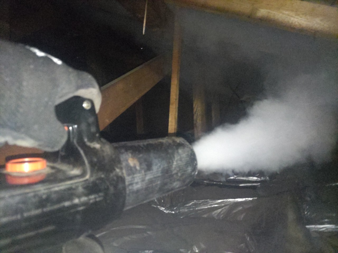 まずは、燻煙剤を使って屋内に潜んでいるアライグマを追い出します。