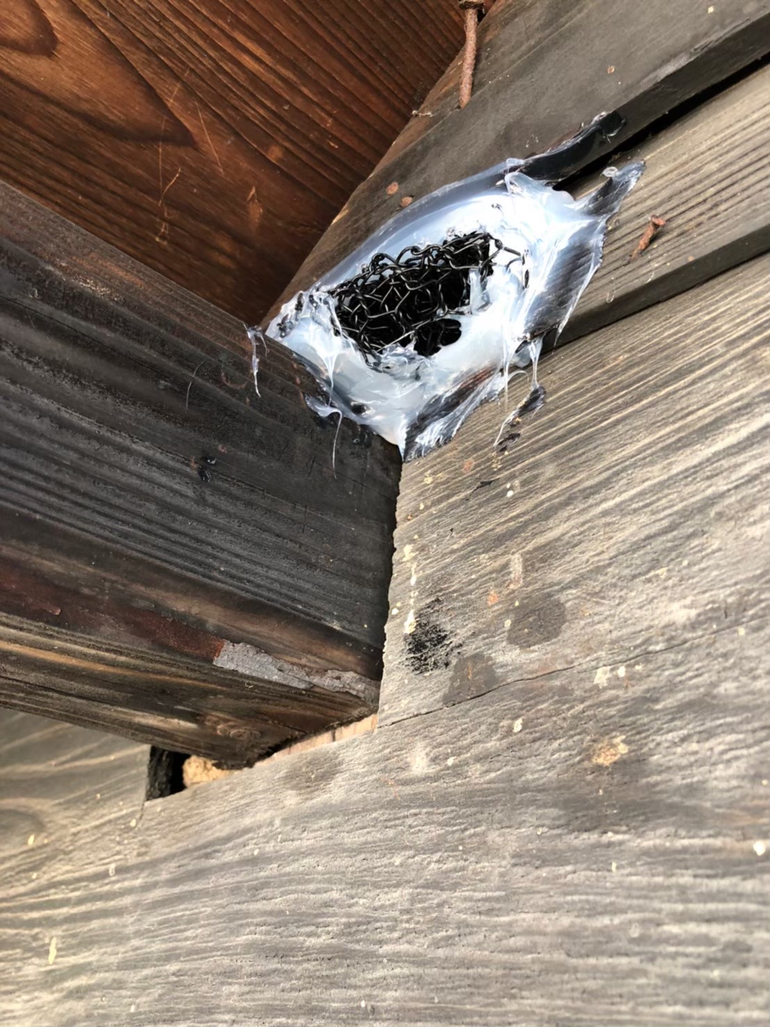 続いて、パンチングメタルや金網、コーキング剤などを用いて、あらゆる侵入経路を封鎖していきます。これによりイタチに限らず、他の害獣の再侵入も防ぐことができます。