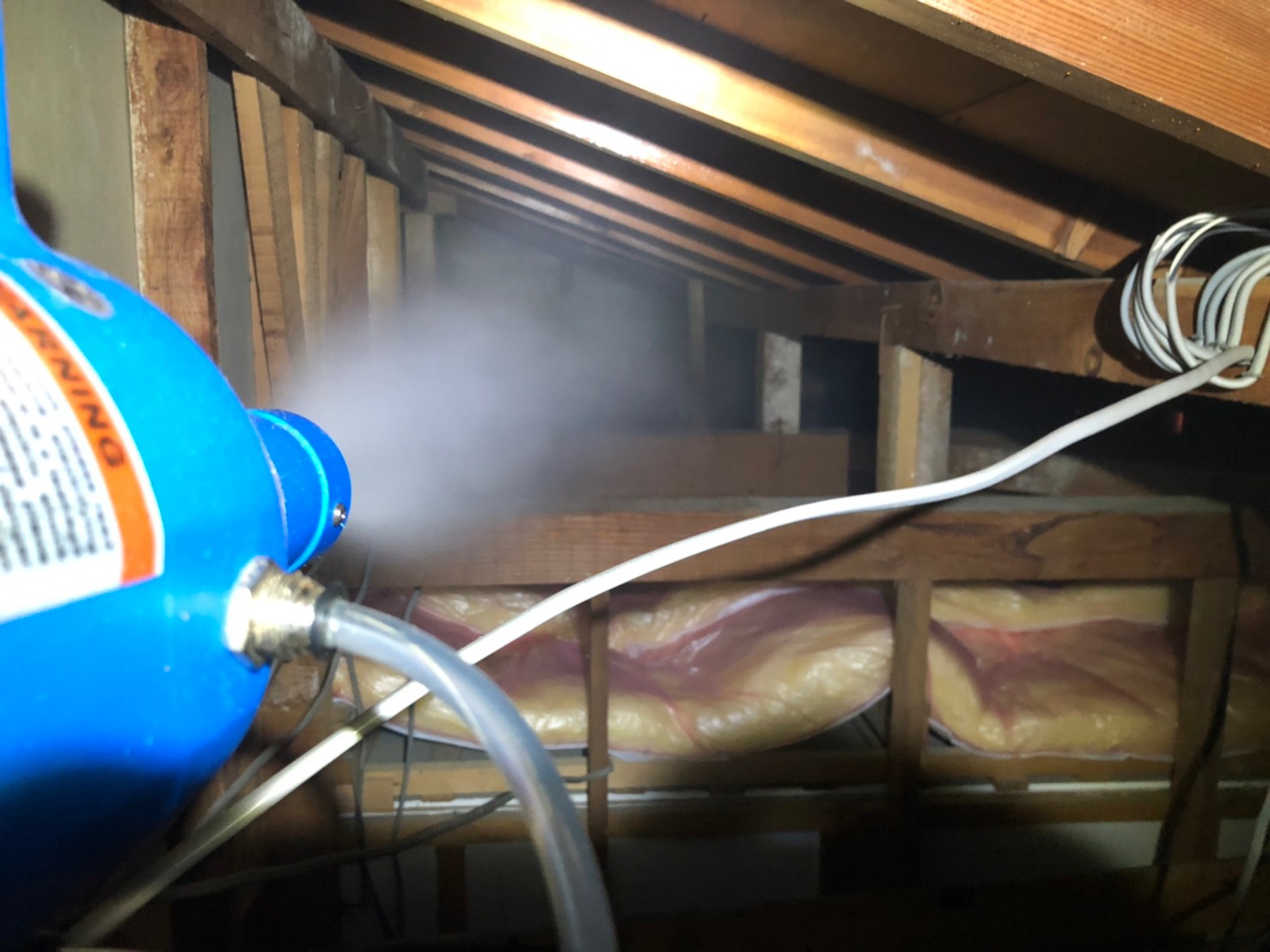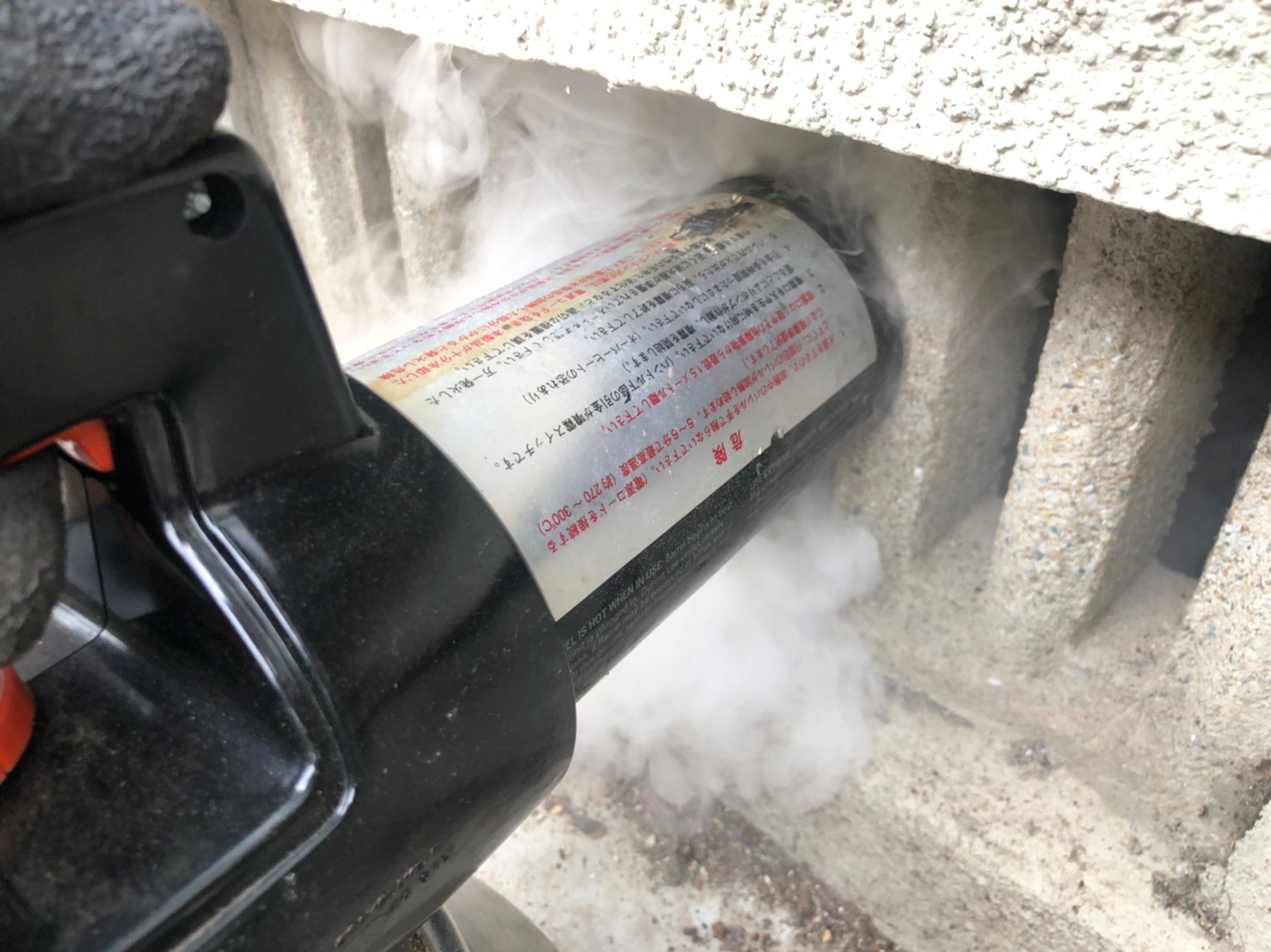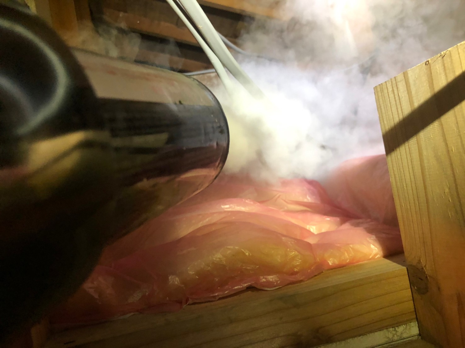 まずは、燻煙剤を使って屋内に潜んでいるイタチ、アライグマを追い出します。