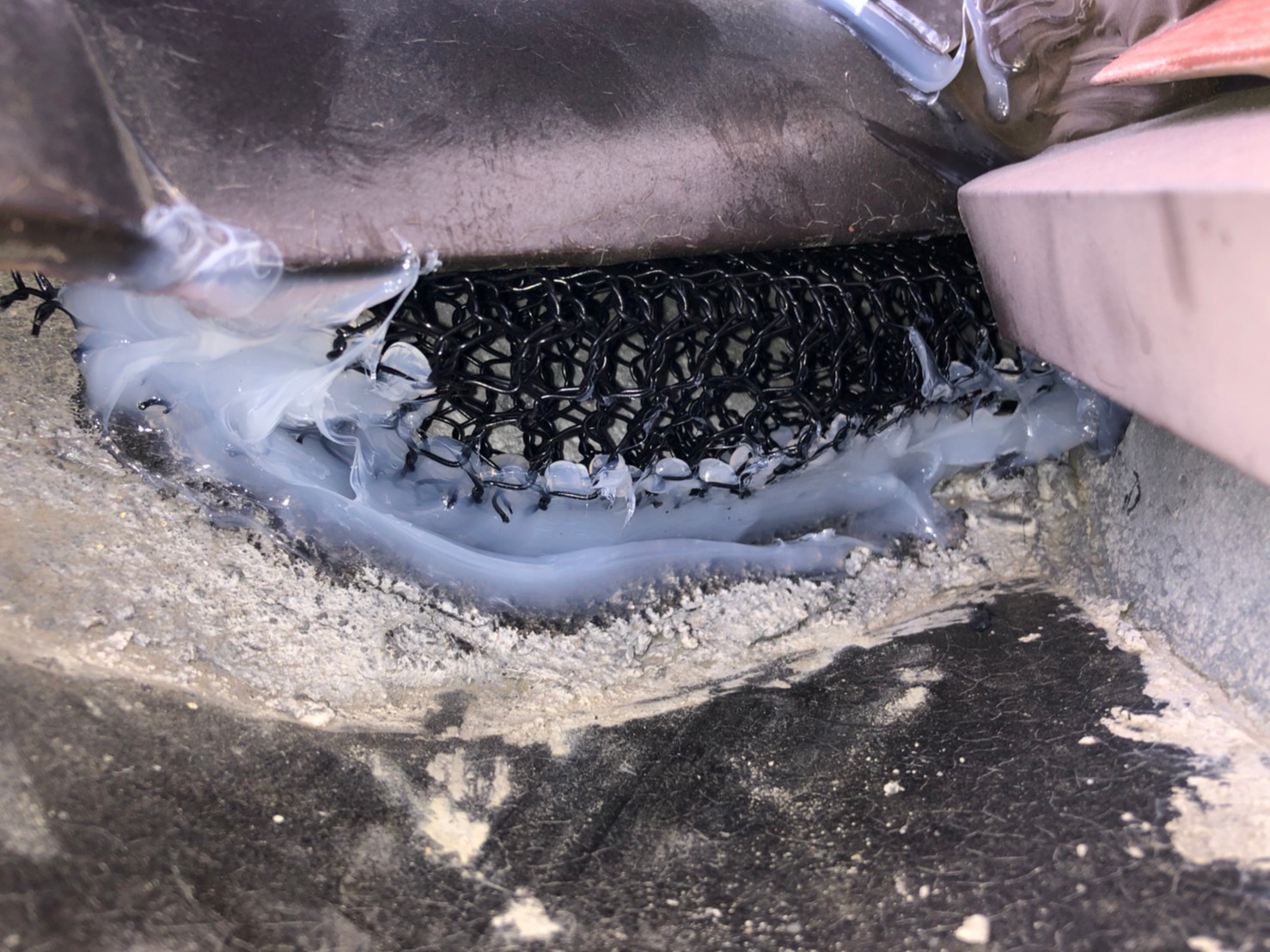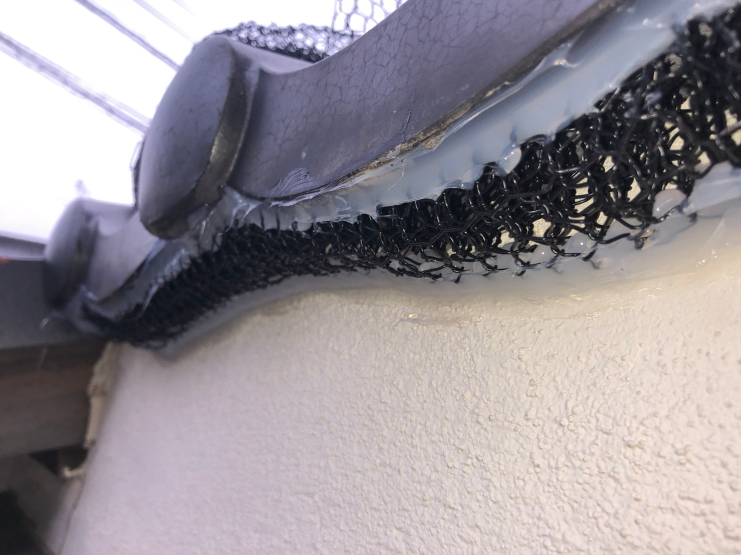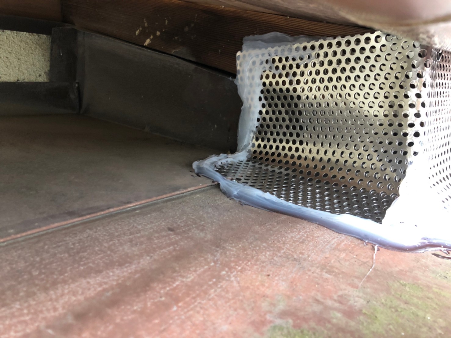 続いて、イタチ、アライグマの再侵入を防ぐために、パンチングメタルや金網、コーキング剤などを用いて侵入経路の封鎖を行います。