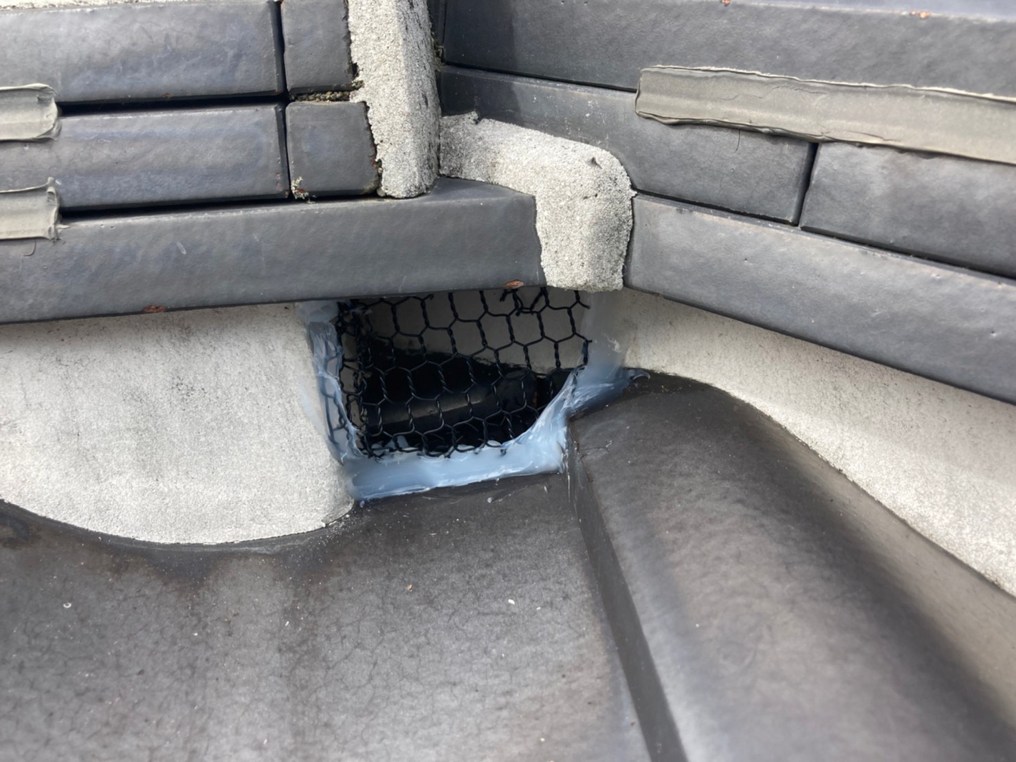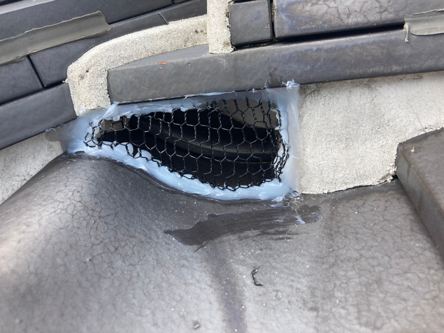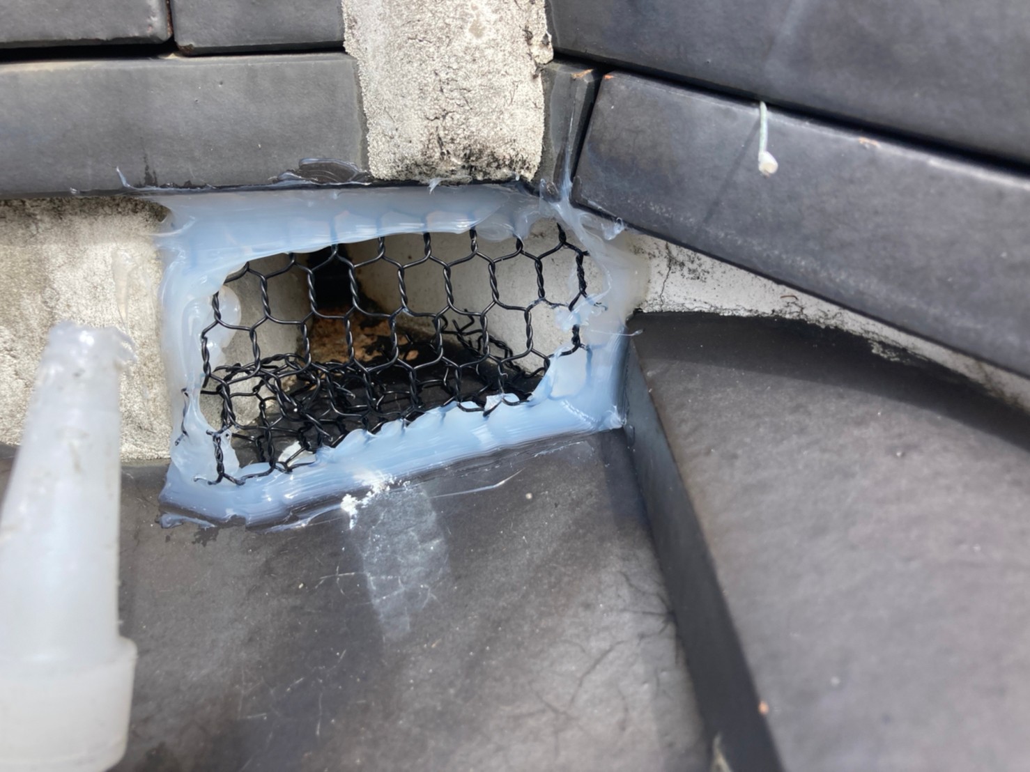 続いて、イタチの再侵入を防ぐために、パンチングメタルや金網、コーキング剤などを用いて侵入経路の封鎖を行います。