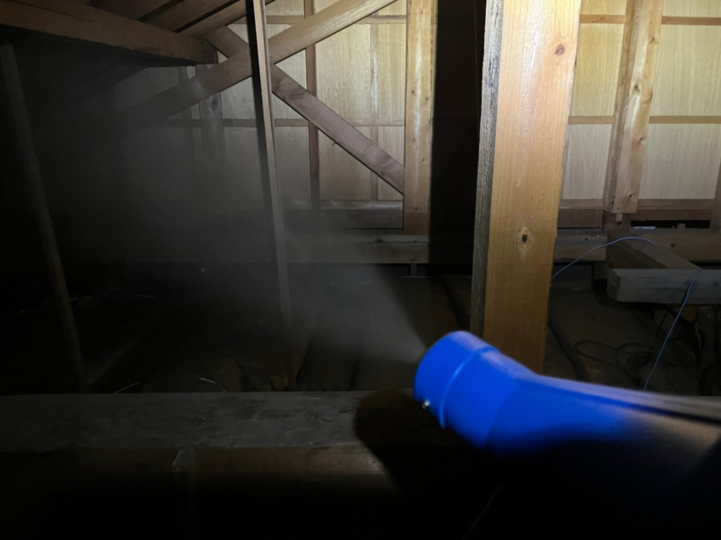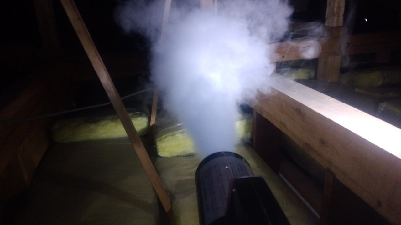 まずは、燻煙剤を使って屋内に潜んでいるネズミ、イタチを追い出します。