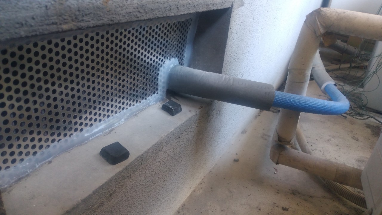 エアコン配管の隙間や外壁の隙間、瓦の隙間、床下通風口といった場所から、ネズミ、イタチが建物内へ侵入しており、騒音被害や糞尿による悪臭、衛生面での不安などの理由からお問い合わせをいただきました。