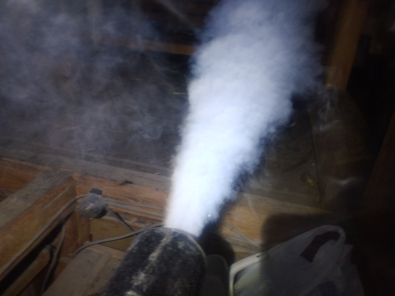 まずは、燻煙剤と呼ばれる薬剤を天井裏や床下に投入することで、アライグマを追い出していきます。