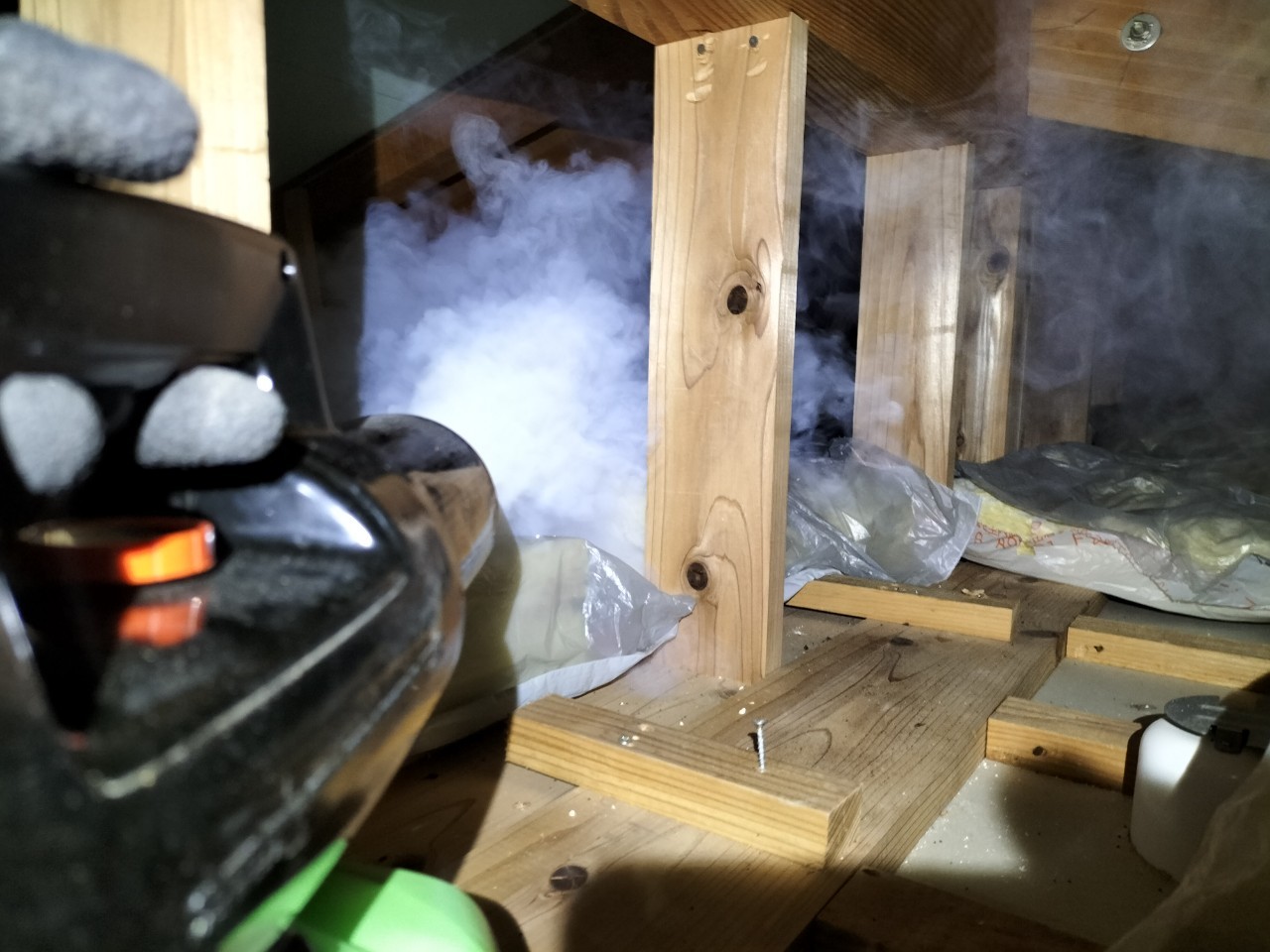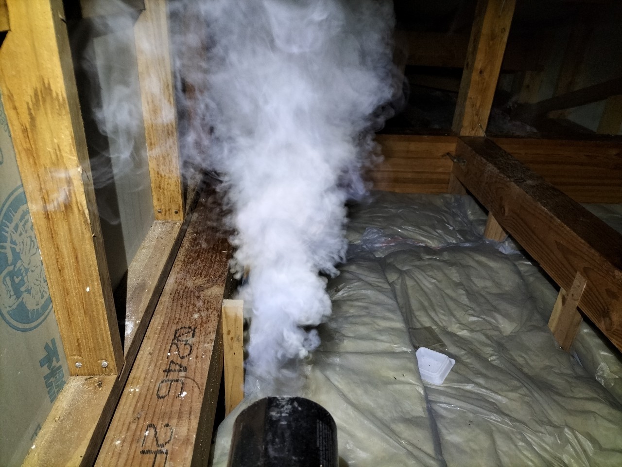 まずは、燻煙剤と呼ばれる薬剤を天井裏や床下に投入することで、ネズミを追い出していきます。
