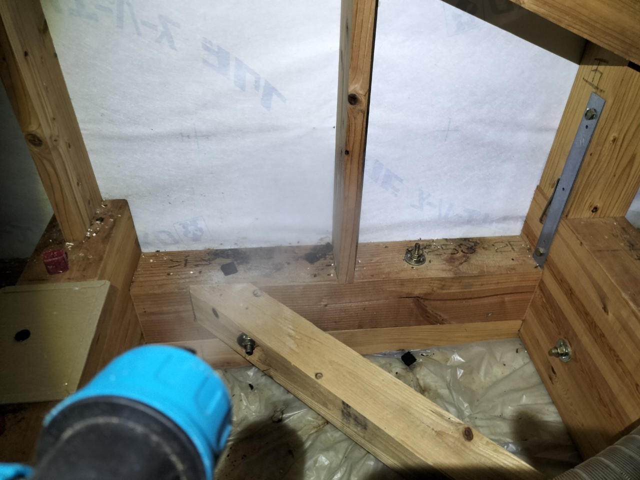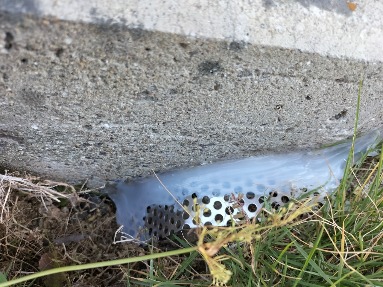 続いて、ネズミの再侵入を防ぐために、パンチングメタルや金網、コーキング剤などを用いて侵入経路の封鎖を行います。