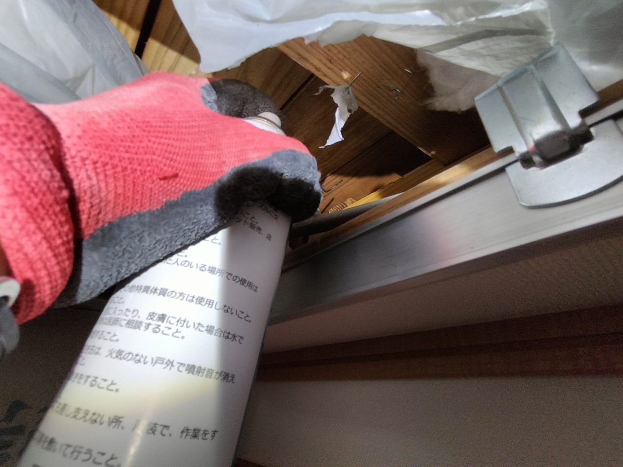 続いて、コウモリの再侵入を防ぐために、パンチングメタルや金網、コーキング剤などを用いて侵入経路の封鎖を行います。