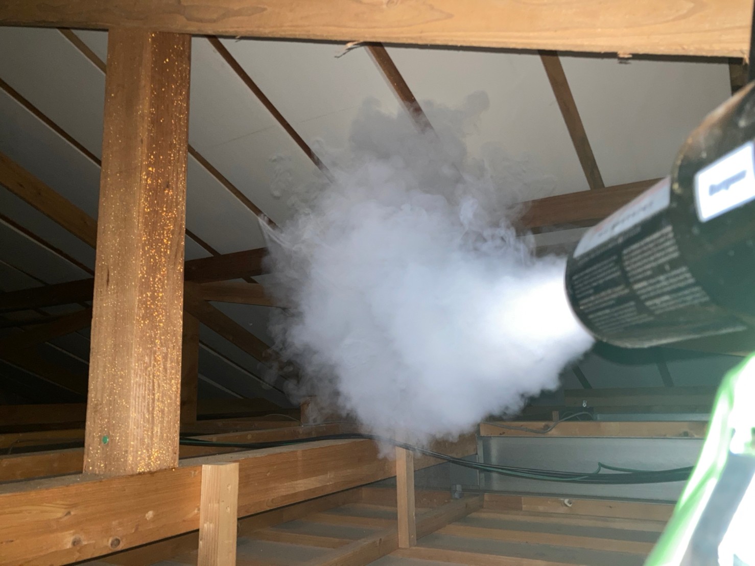 まずは、燻煙剤を使って屋内に潜んでいるコウモリを追い出します。