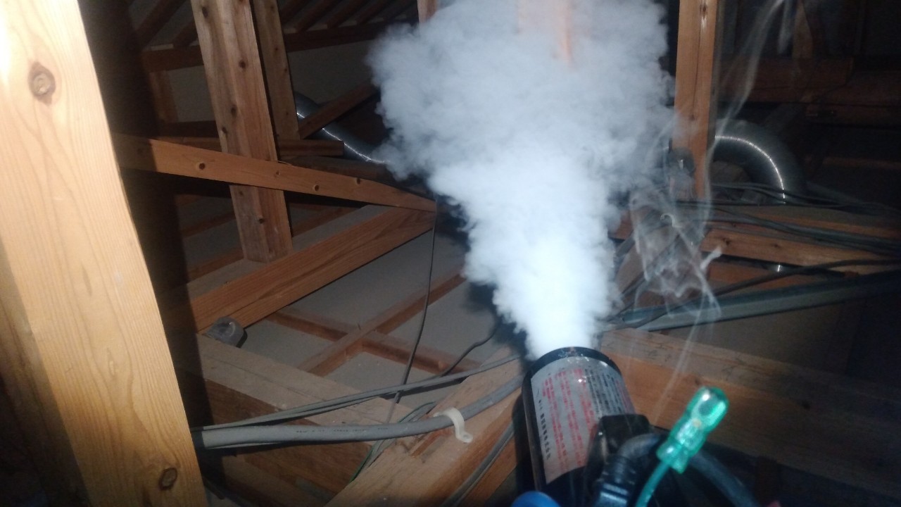 まずは、燻煙剤と呼ばれる薬剤を天井裏や床下に投入することで、イタチを追い出していきます。