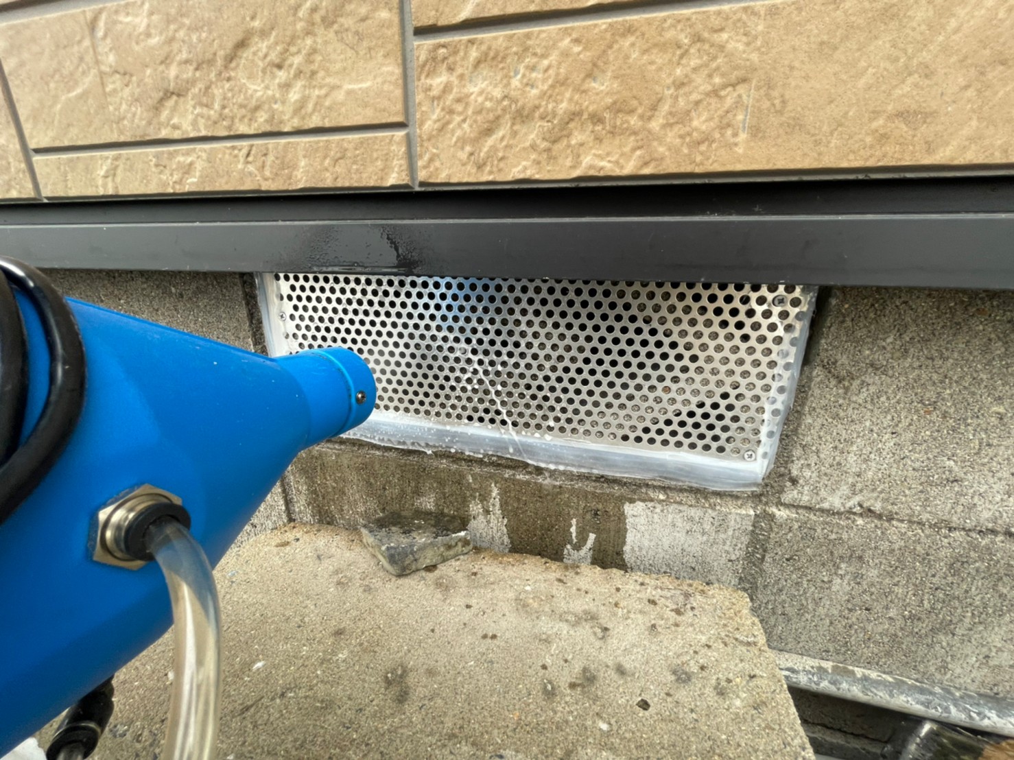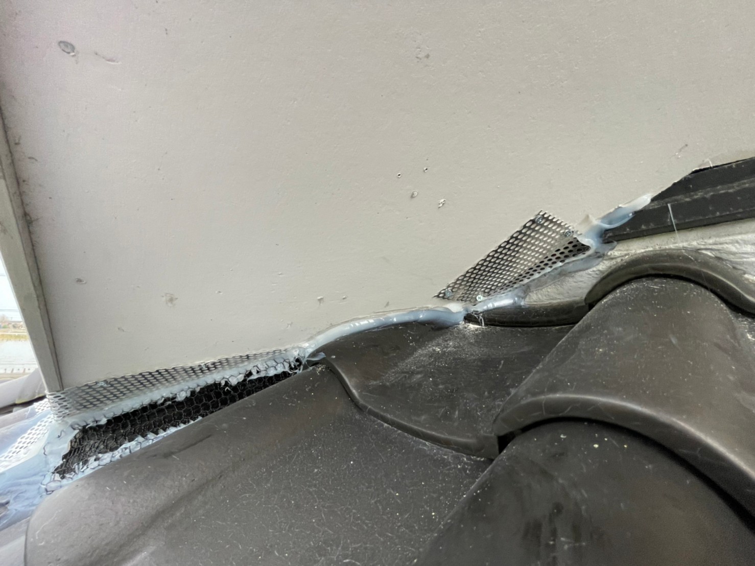 続いて、イタチの再侵入を防ぐために、パンチングメタルや金網、コーキング剤などを用いて侵入経路の封鎖を行います。