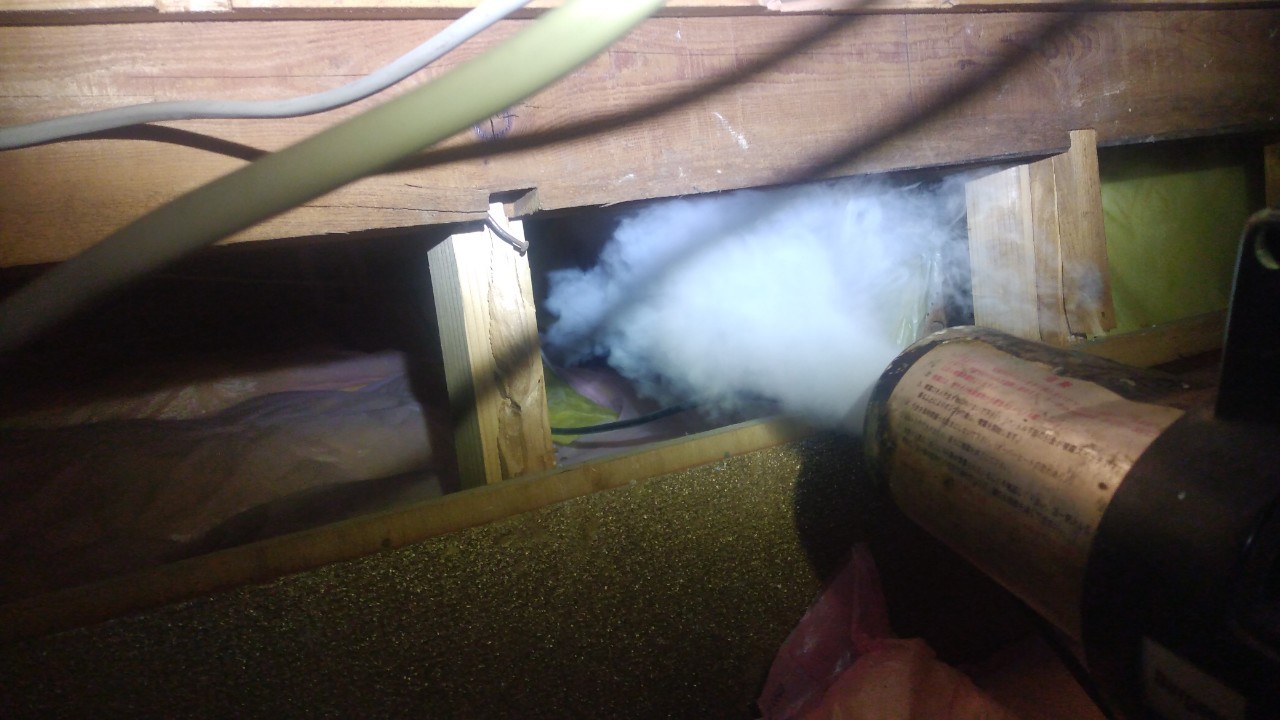 まずは、燻煙剤を使って屋内に潜んでいるネズミ、イタチを追い出します。