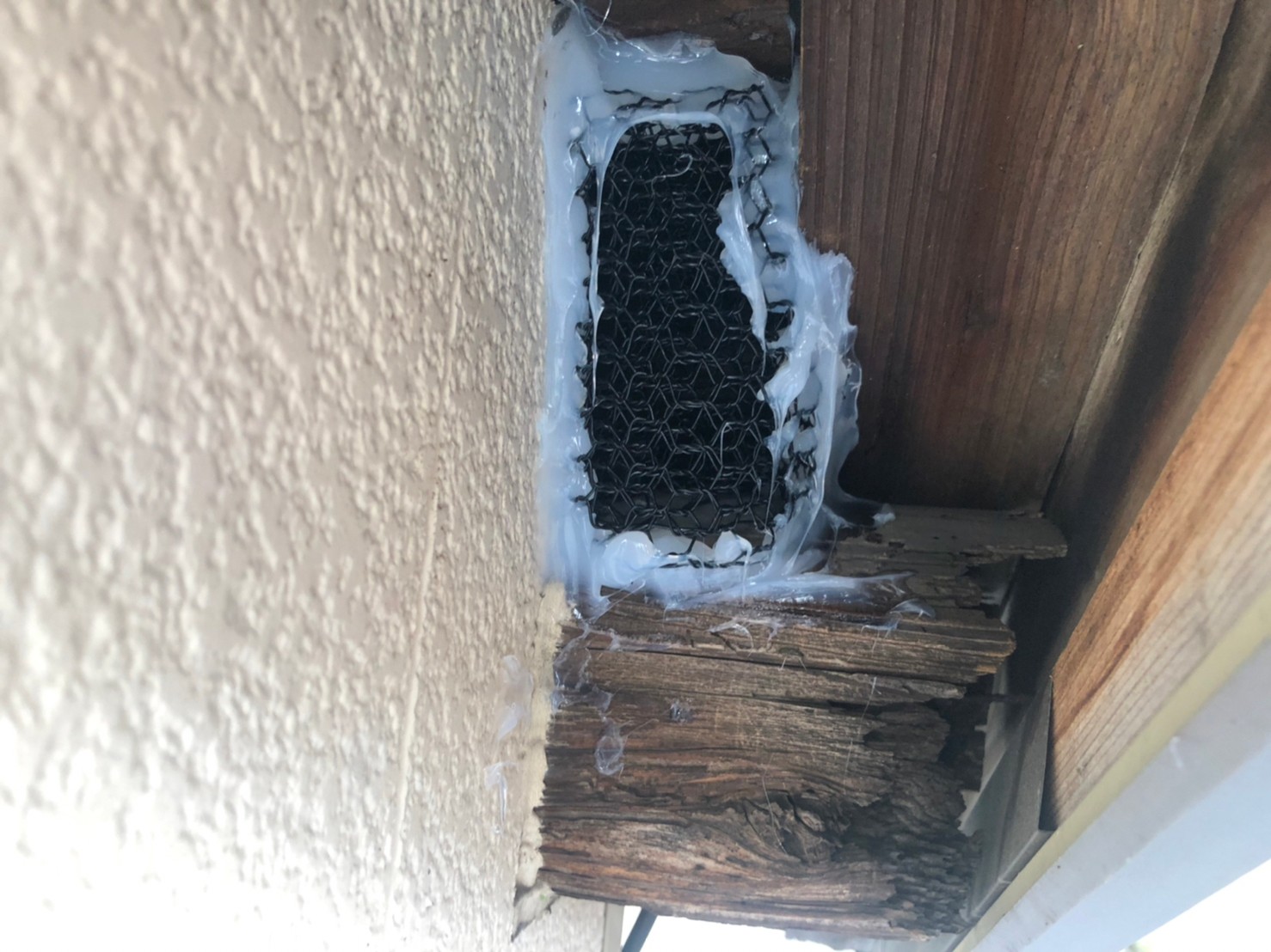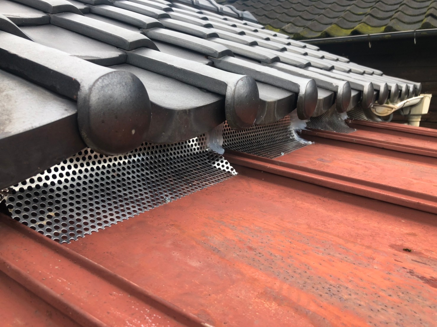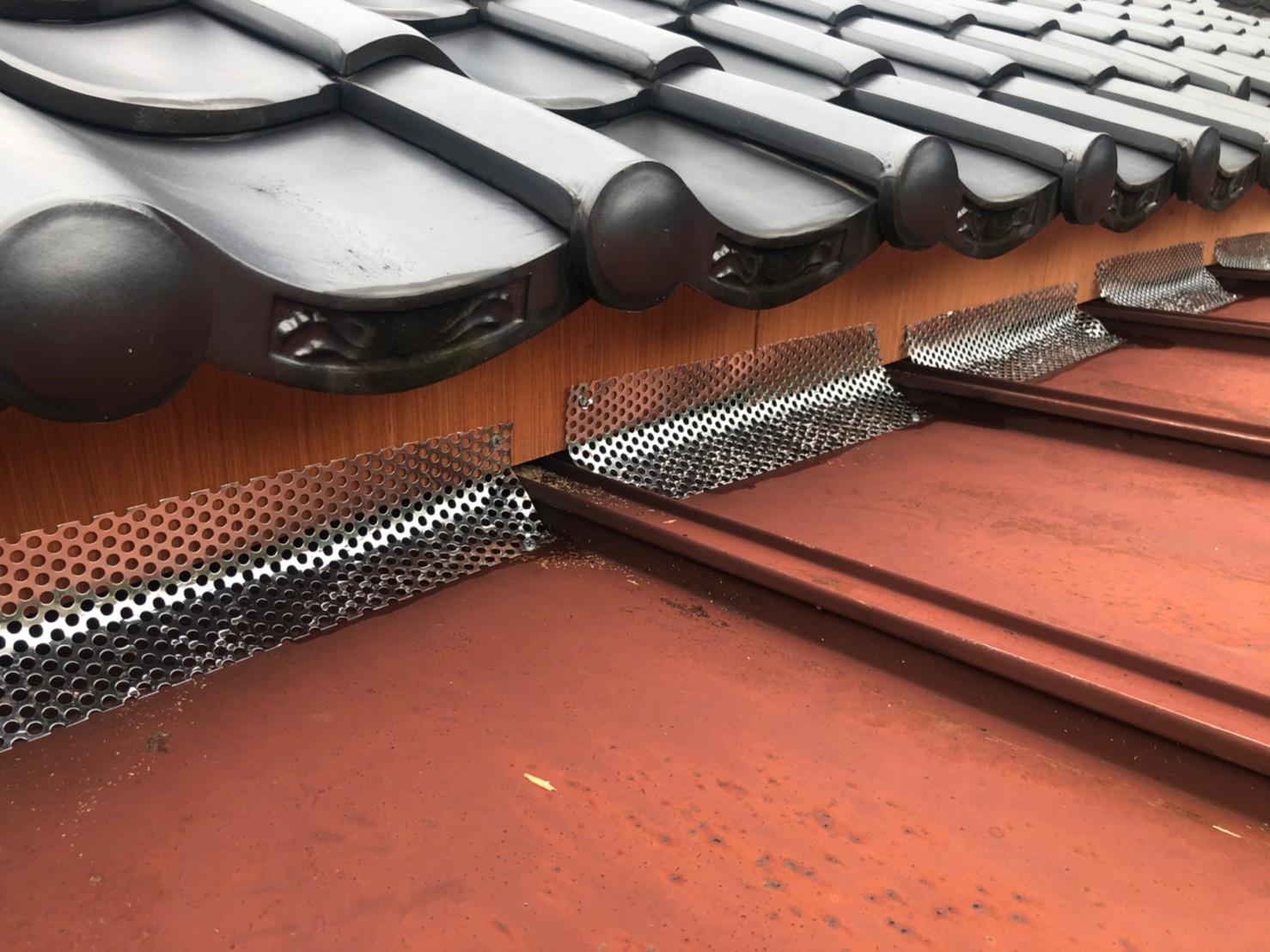 続いて、パンチングメタルや金網、コーキング剤などを用いて、あらゆる侵入経路を封鎖していきます。これによりネコに限らず、他の害獣の再侵入も防ぐことができます。