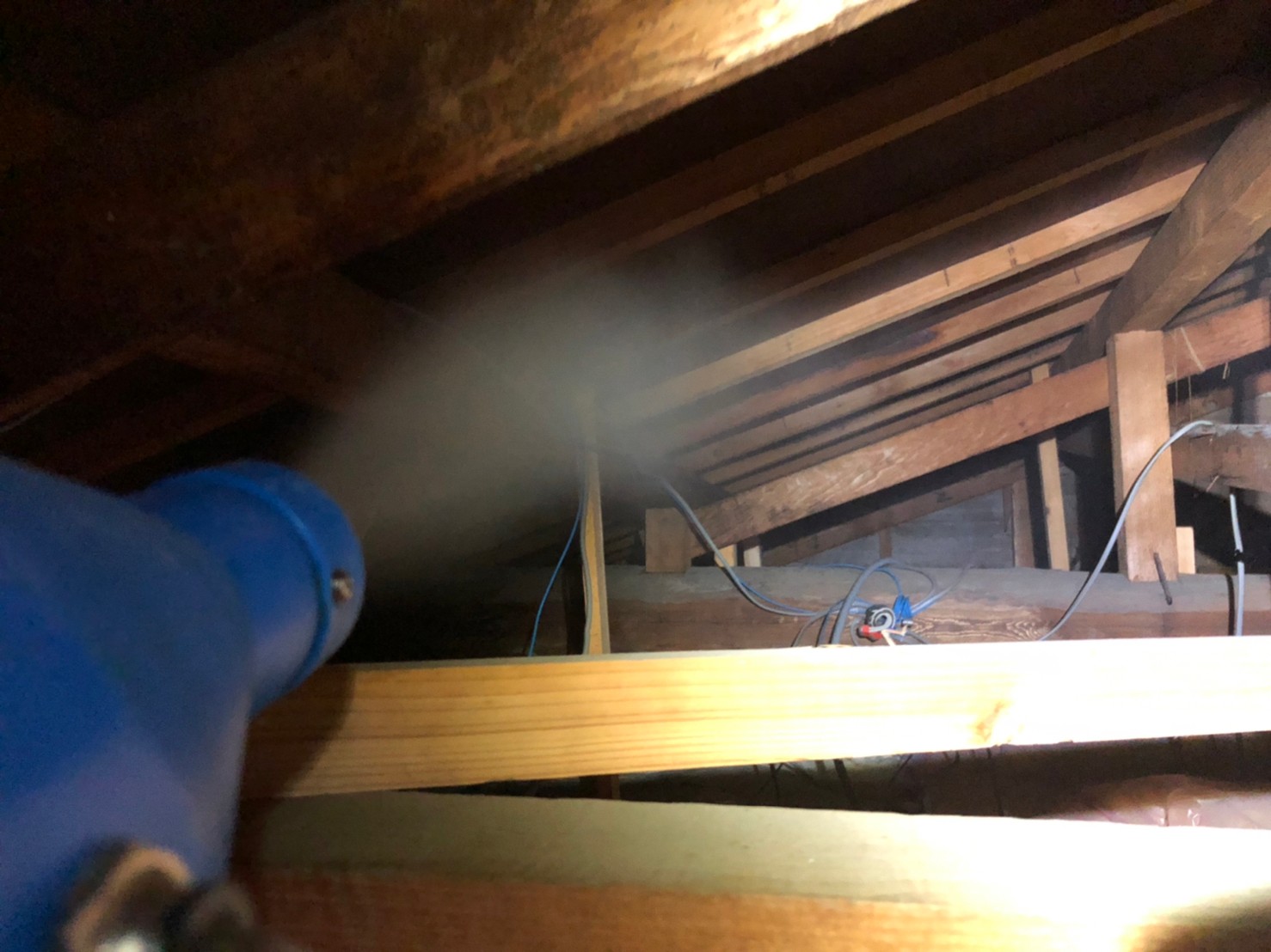 まずは、燻煙剤と呼ばれる薬剤を天井裏や床下に投入することで、ネズミ、イタチを追い出していきます。