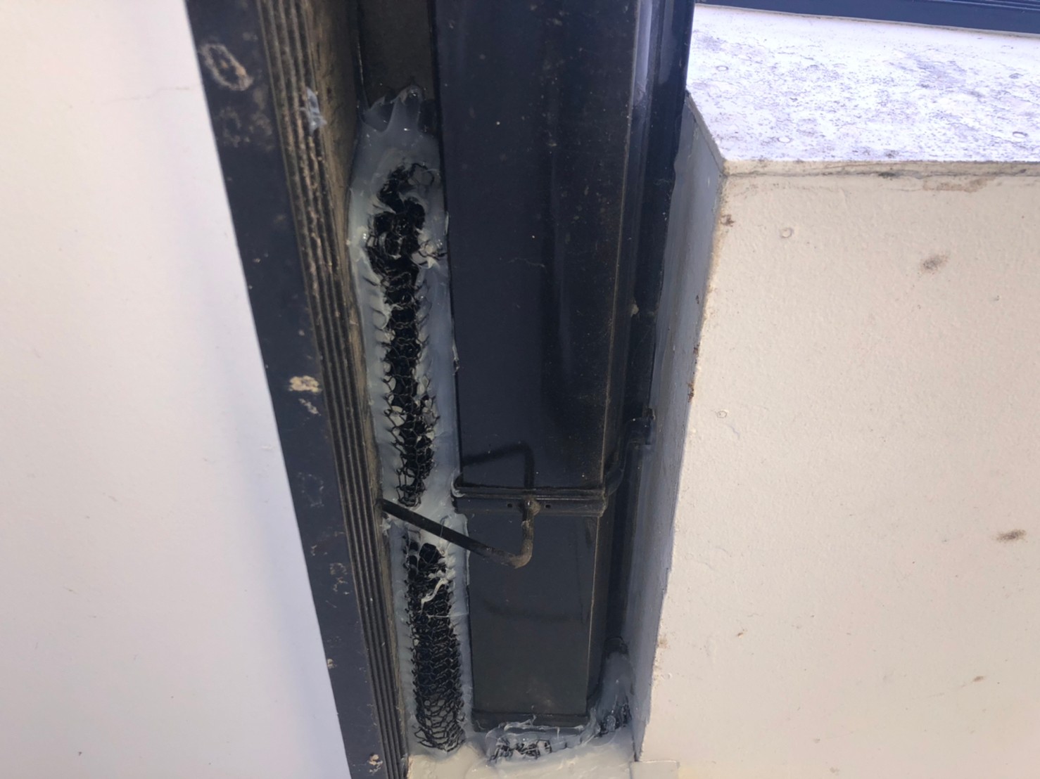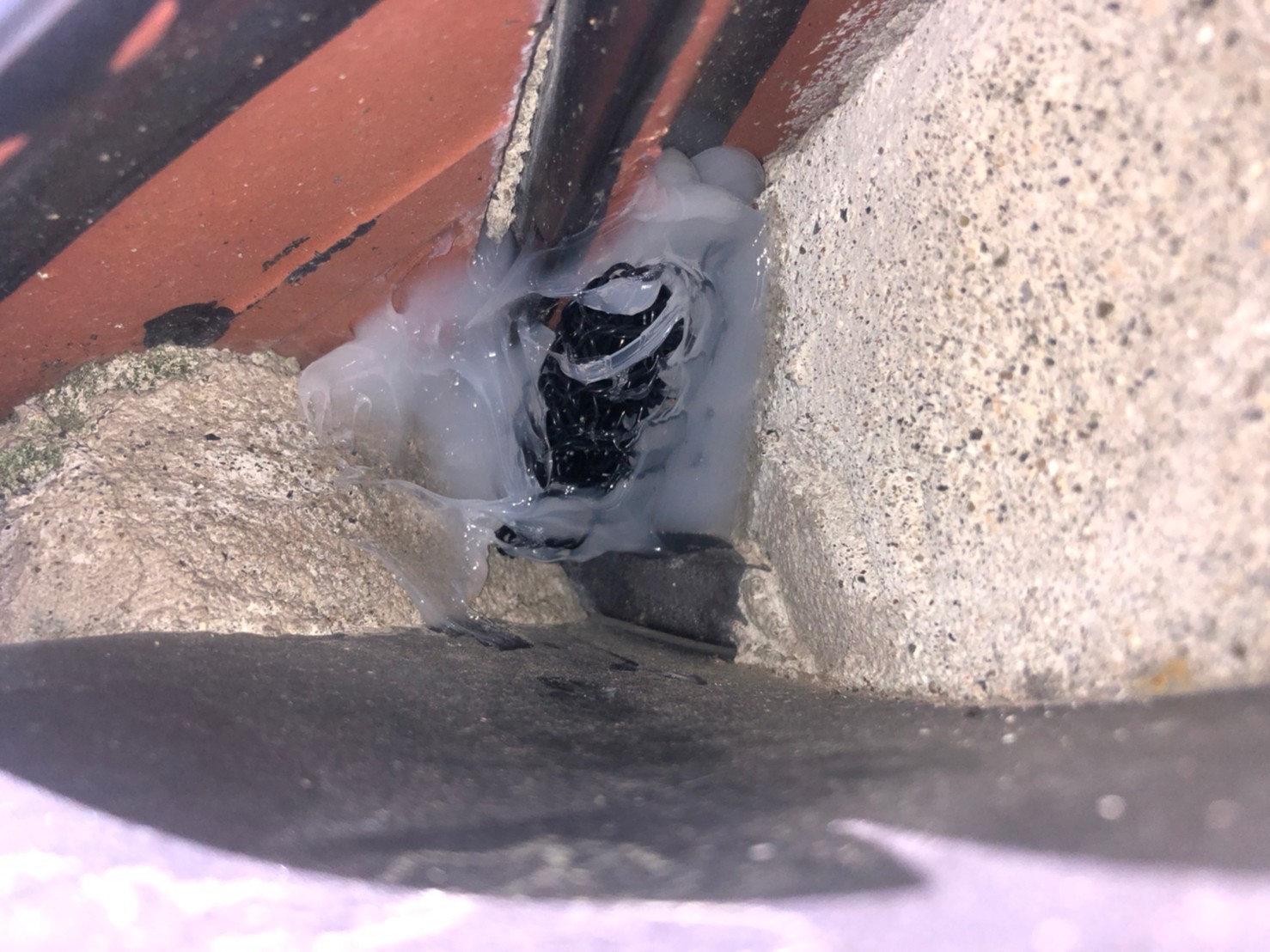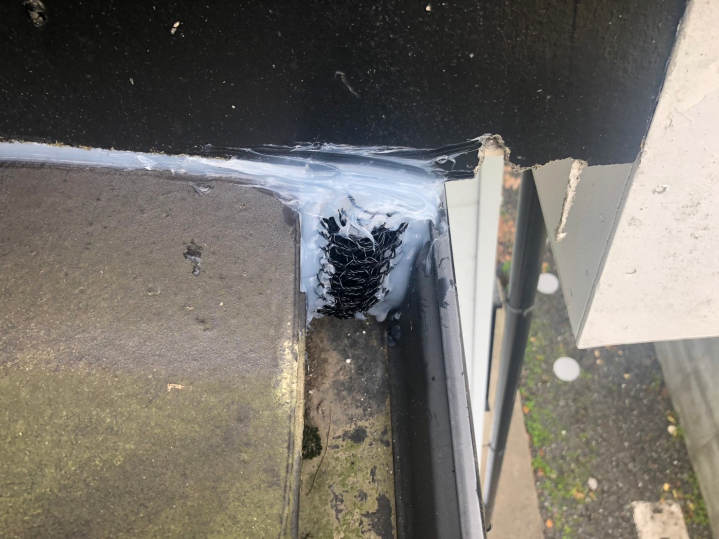 続いて、ネズミの再侵入を防ぐために、パンチングメタルや金網、コーキング剤などを用いて侵入経路の封鎖を行います。