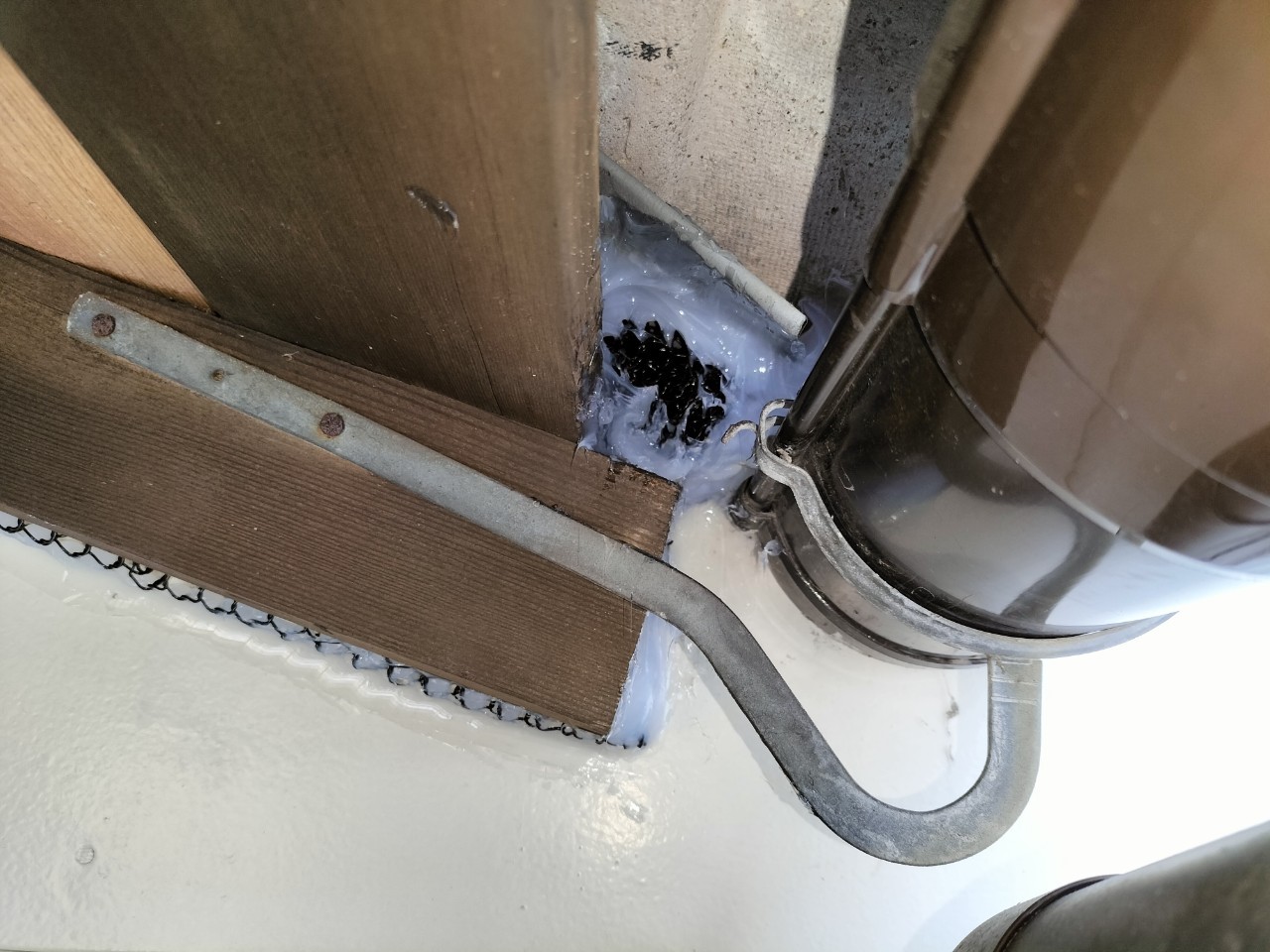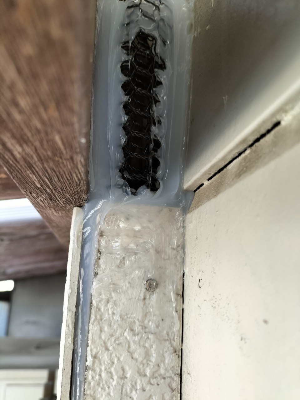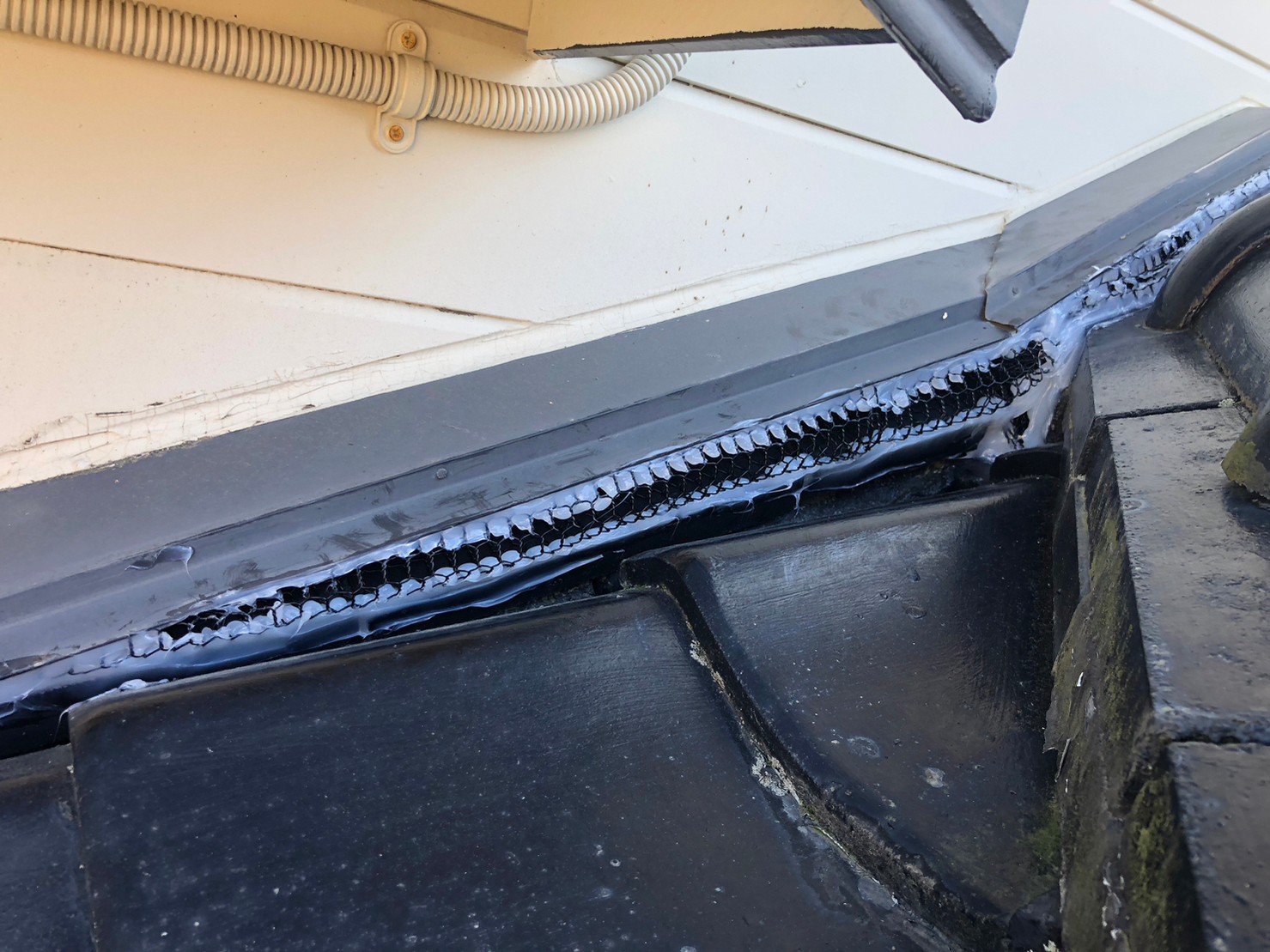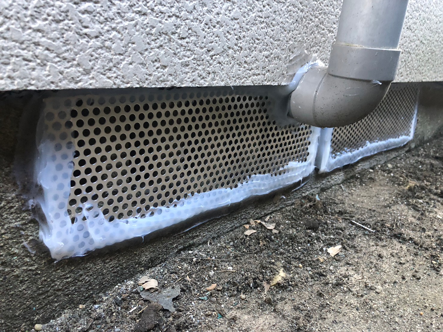 続いて、パンチングメタルや金網、コーキング剤などを用いて、あらゆる侵入経路を封鎖していきます。これによりイタチに限らず、他の害獣の再侵入も防ぐことができます。