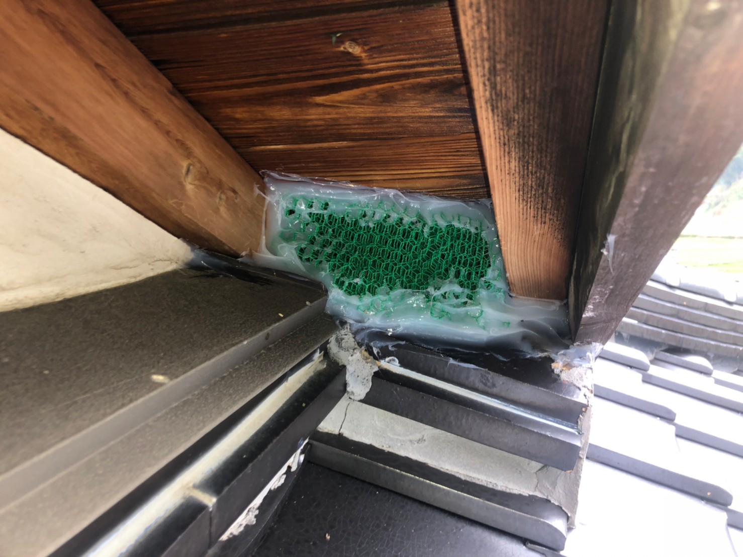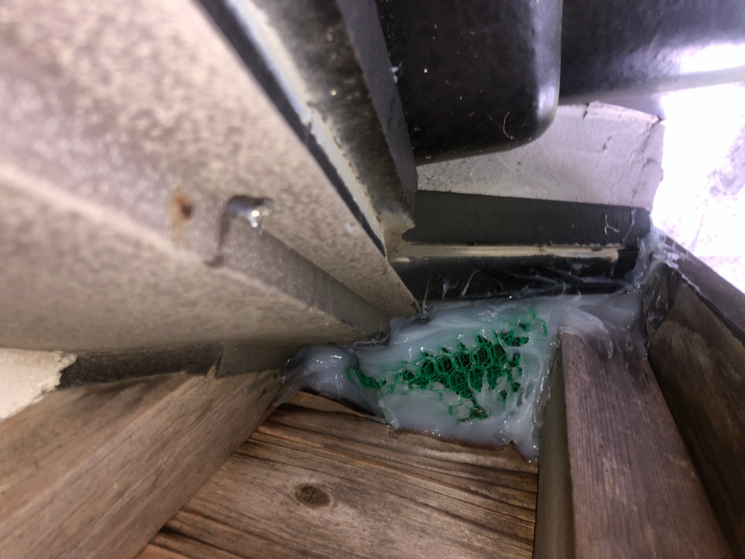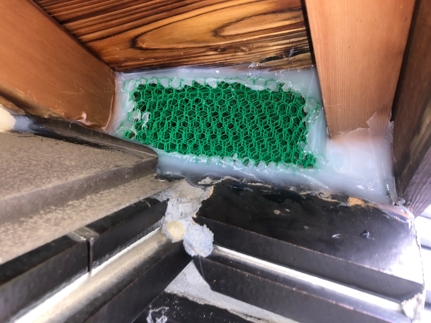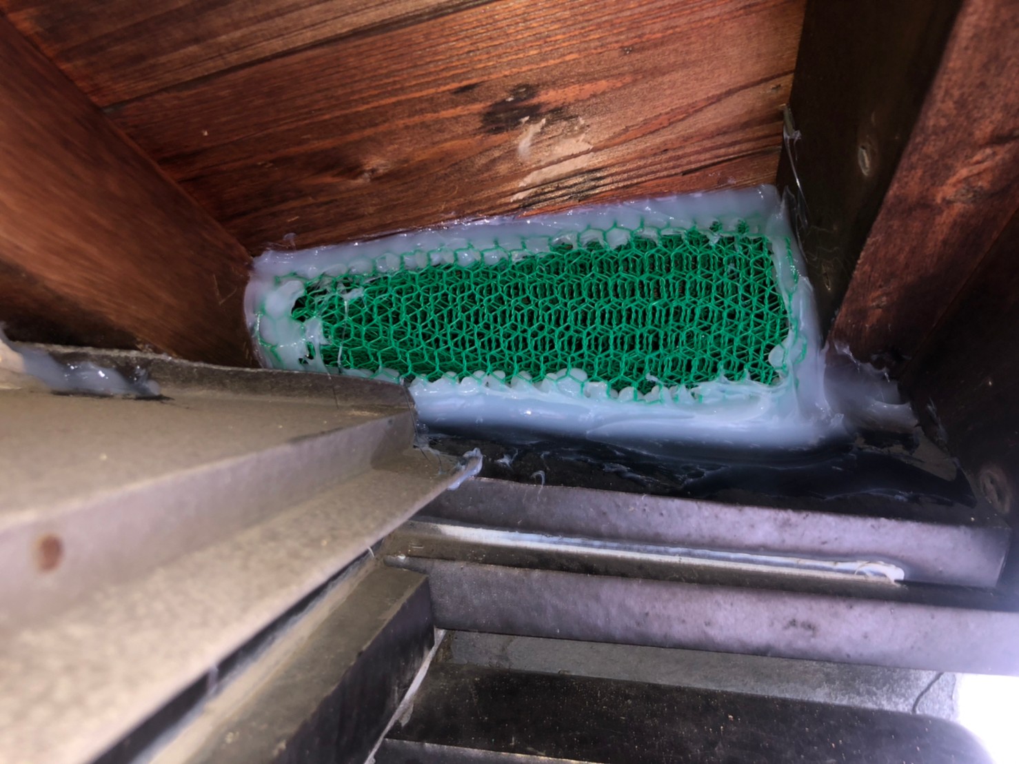 続いて、パンチングメタルや金網、コーキング剤などを用いて、あらゆる侵入経路を封鎖していきます。これによりイタチに限らず、他の害獣の再侵入も防ぐことができます。