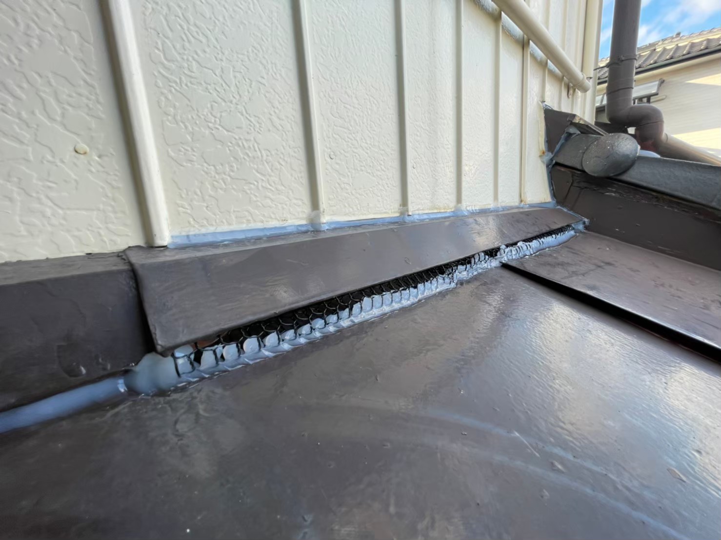 続いて、ネズミの再侵入を防ぐために、パンチングメタルや金網、コーキング剤などを用いて侵入経路の封鎖を行います。