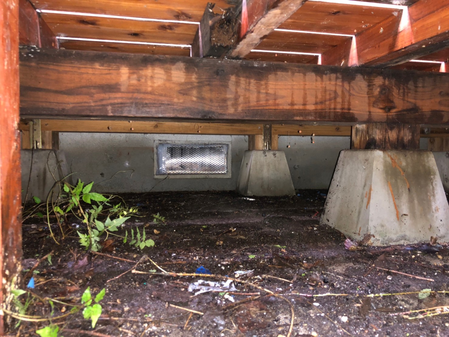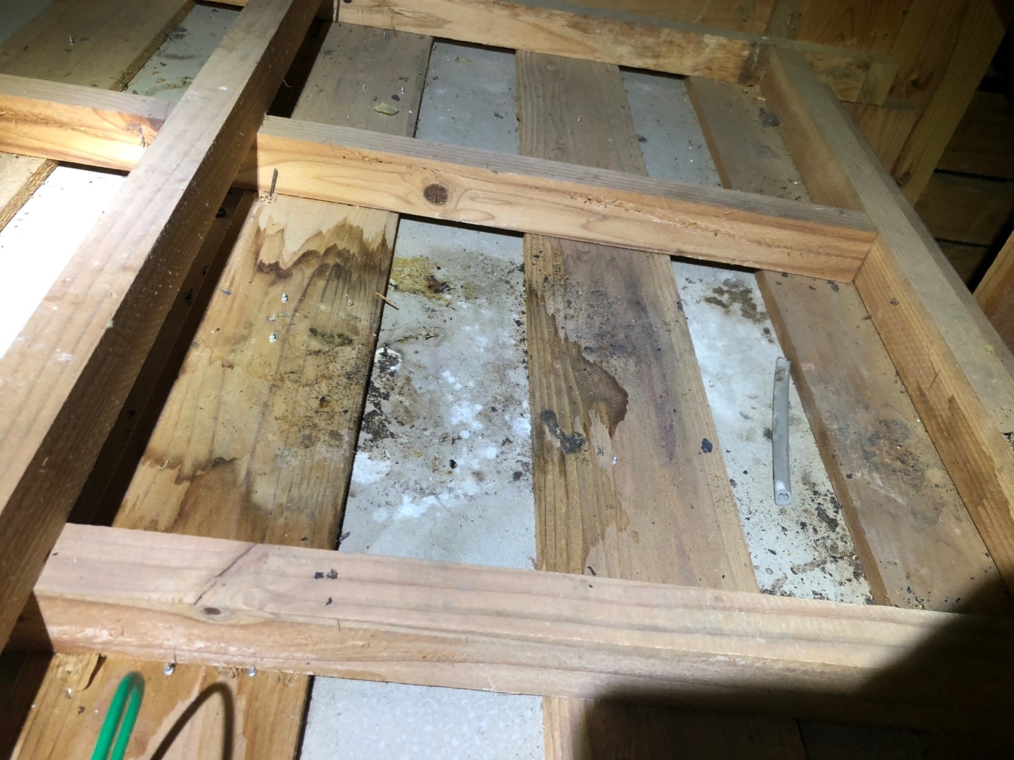 屋根の隙間や配管引き込み部、床下通風口、エアコン配管の隙間等がイタチの侵入経路と疑われました。